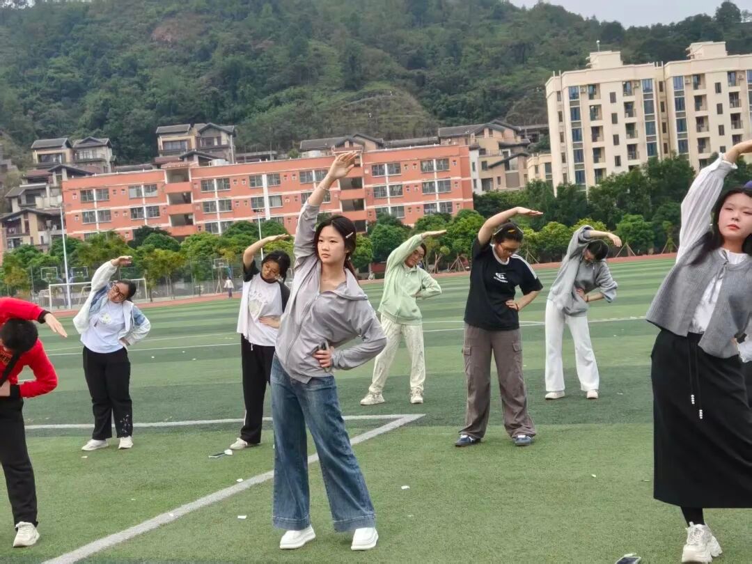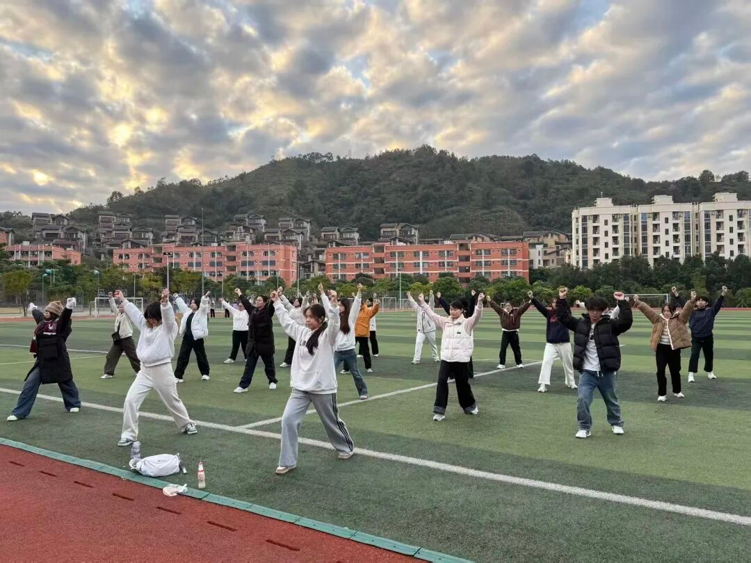 在晨练活动中,同学们通过规范整齐的动作舒展身体、激发活力。伴随节奏明快的音乐,跳跃、摆臂、转身等动作连贯舒展,展现了青年学子朝气蓬勃的精神面貌。