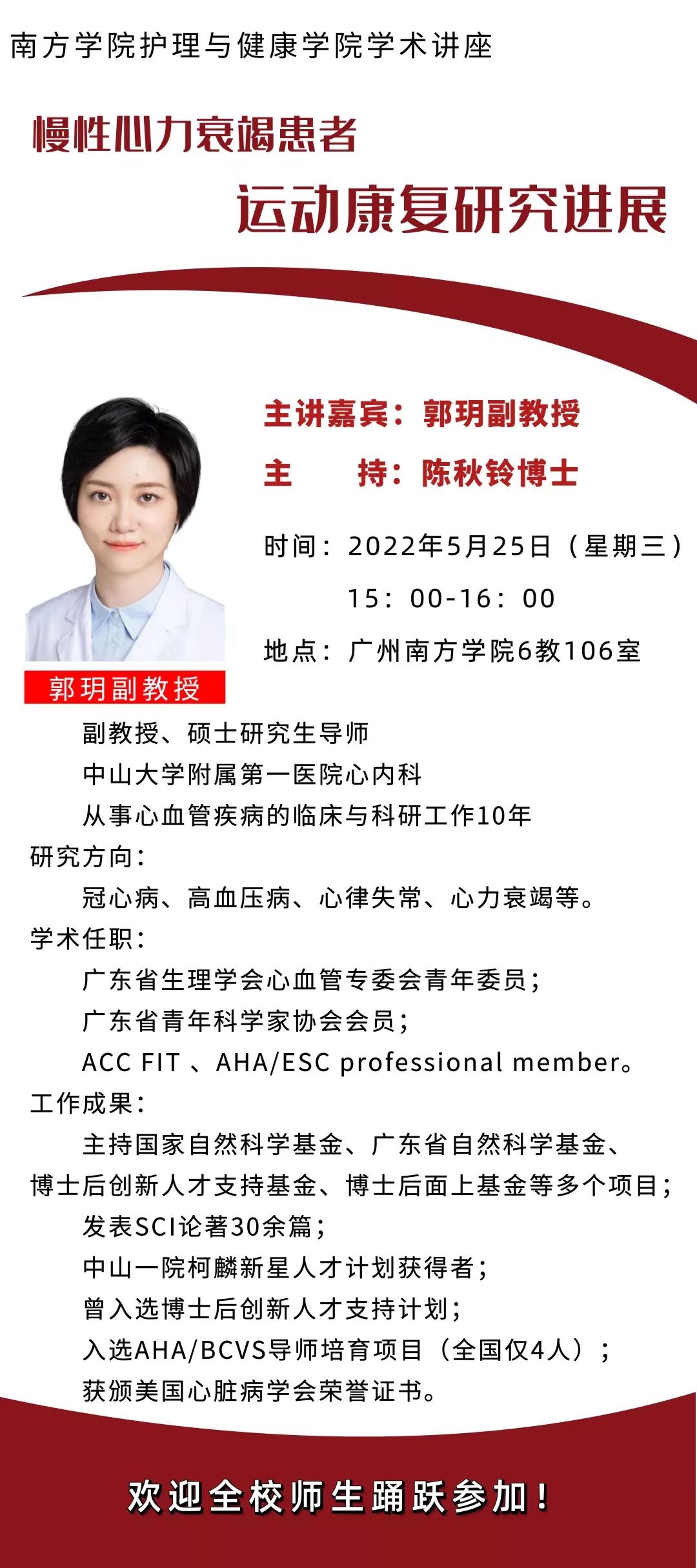 郭玥副教授,硕士研究生导师,中山大学附属第一医院心内科,从事心血管疾病的临床与科研工作10年。