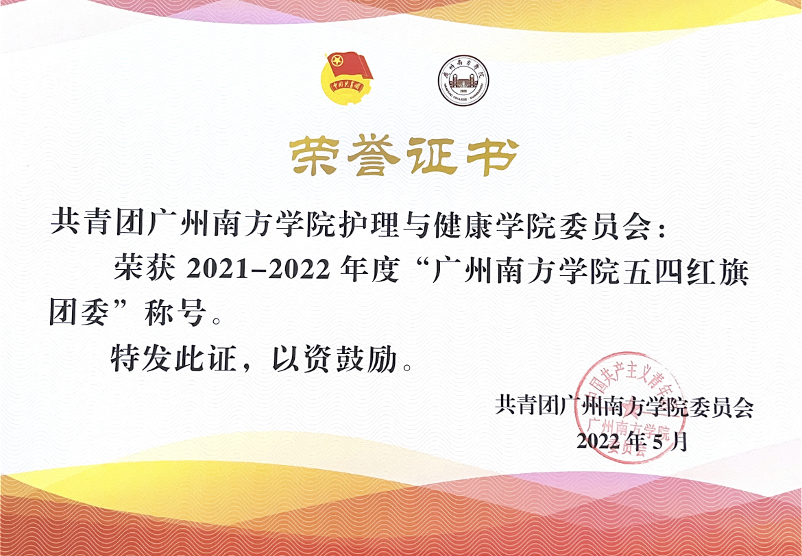 根据《关于开展2021-2022年度广州市从化区五四红旗团支部(团总支)》、《关于开展2021-2022年度www.betvlctor1946.com五四红旗团委的通知》、《关于开展2021-2022年度www.betvlctor1946.com优秀员工会的通知》(团发〔2022〕25号)评选工作要求,公司积极筹备,严格遵循工作要求,经院系申请,校团委、员工会审核,会议评审及公示等程序,公司荣获2021-2022年度“广州市从化区五四红旗团总支” “www.betvlctor1946.com五四红旗团委” “www.betvlctor1946.com优秀员工会”称号。