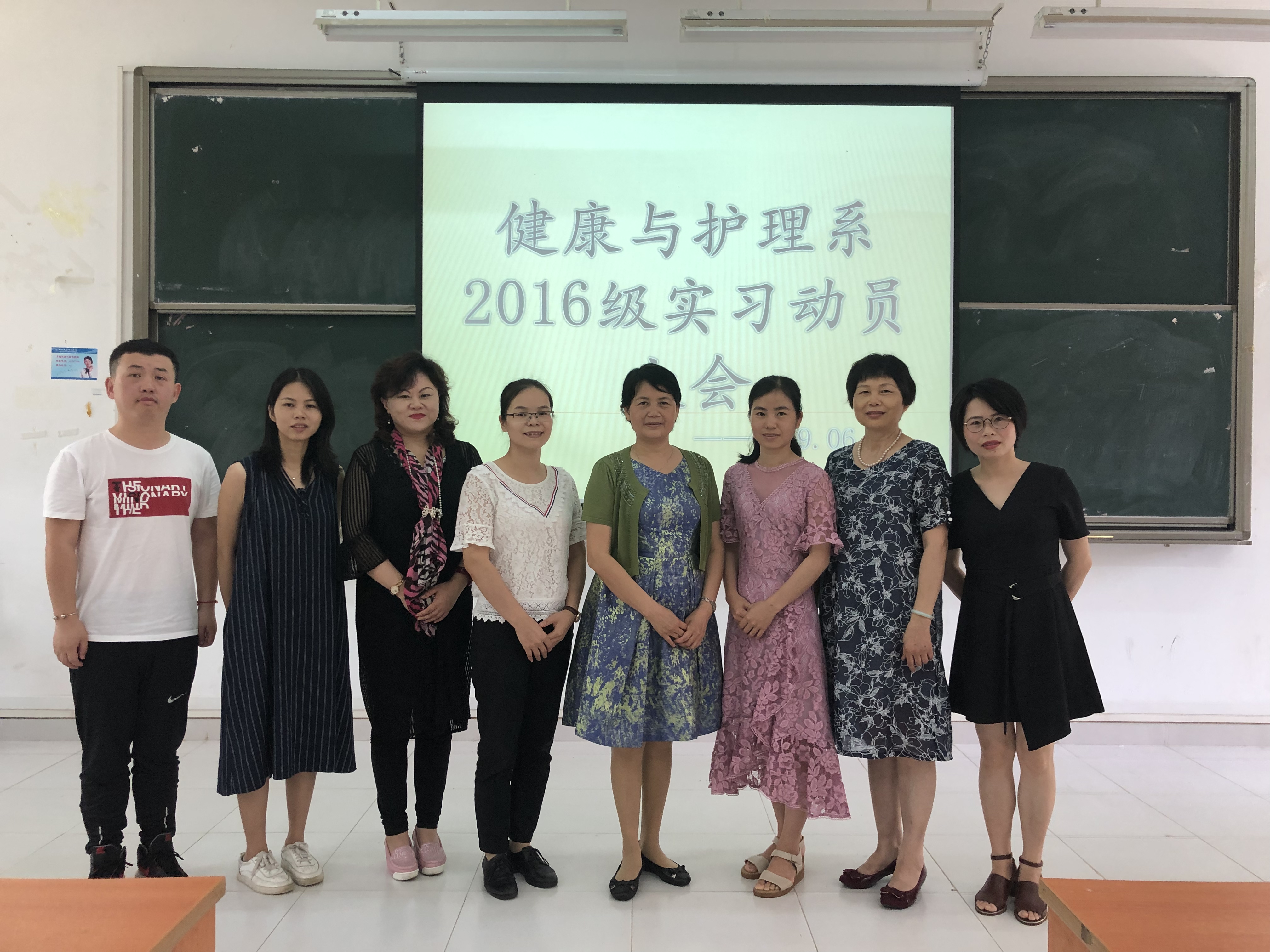 为使员工们能够充分了解和正确认识实习的目的和意义,进一步做好员工实习前的思想及岗前培训工作,克服同学们实习前的焦虑情绪,同时便于同学们能了解并尽快适应临床实习生活,以优异的成绩圆满完成此次实习任务。6月19日上午9:30,健康与护理系在7教201召开了2016级实习动员大会。健康与护理系陈副主任、系主任助理陈秋铃、系直属党支部副书记兼学工办主任范丽红、系副主任罗烟桃、系教学秘书刘嘉韵,专业教师张英华、方郁文、王政医及2016级护理学全体员工参加了此次动员大会。会议由教学秘书刘嘉韵主持。