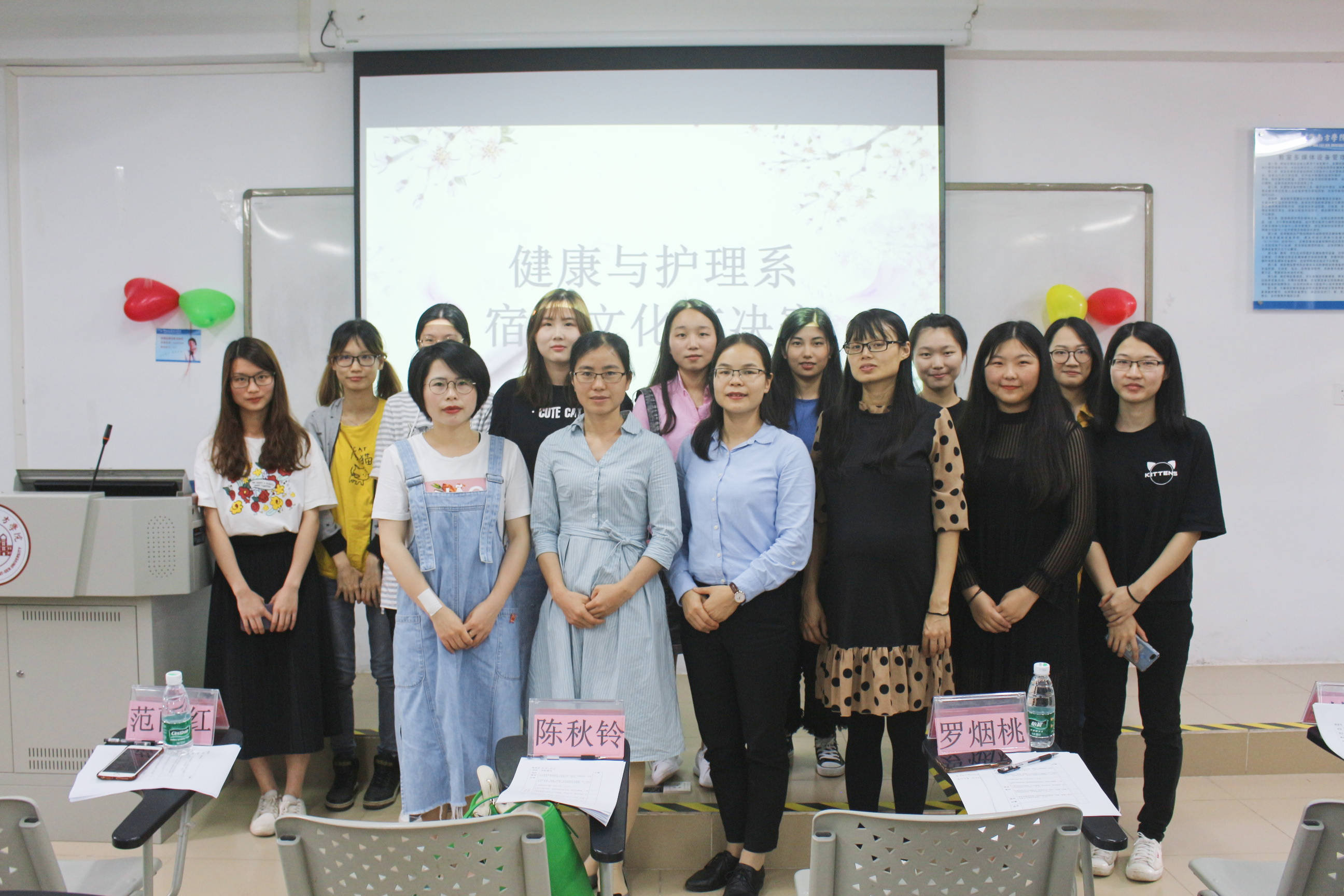 4月24日下午,健康与护理系宿舍文化节决赛在10教206拉开帷幕,系直属党支部副书记兼员工工作办公室主任范丽红老师,主任助理陈秋铃老师,办公室副主任罗烟桃老师,团总支书记林晓兰老师参加了本次活动。