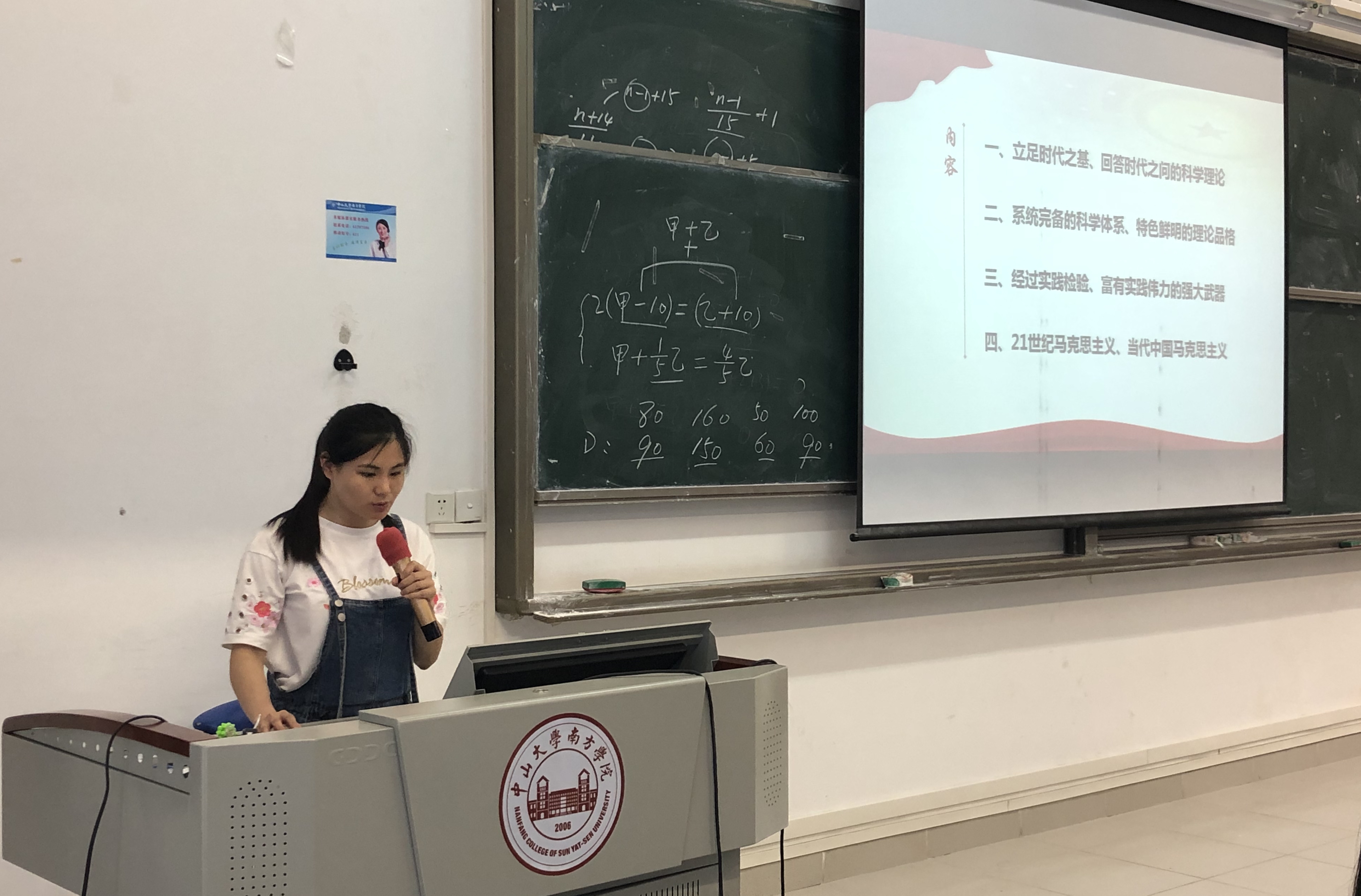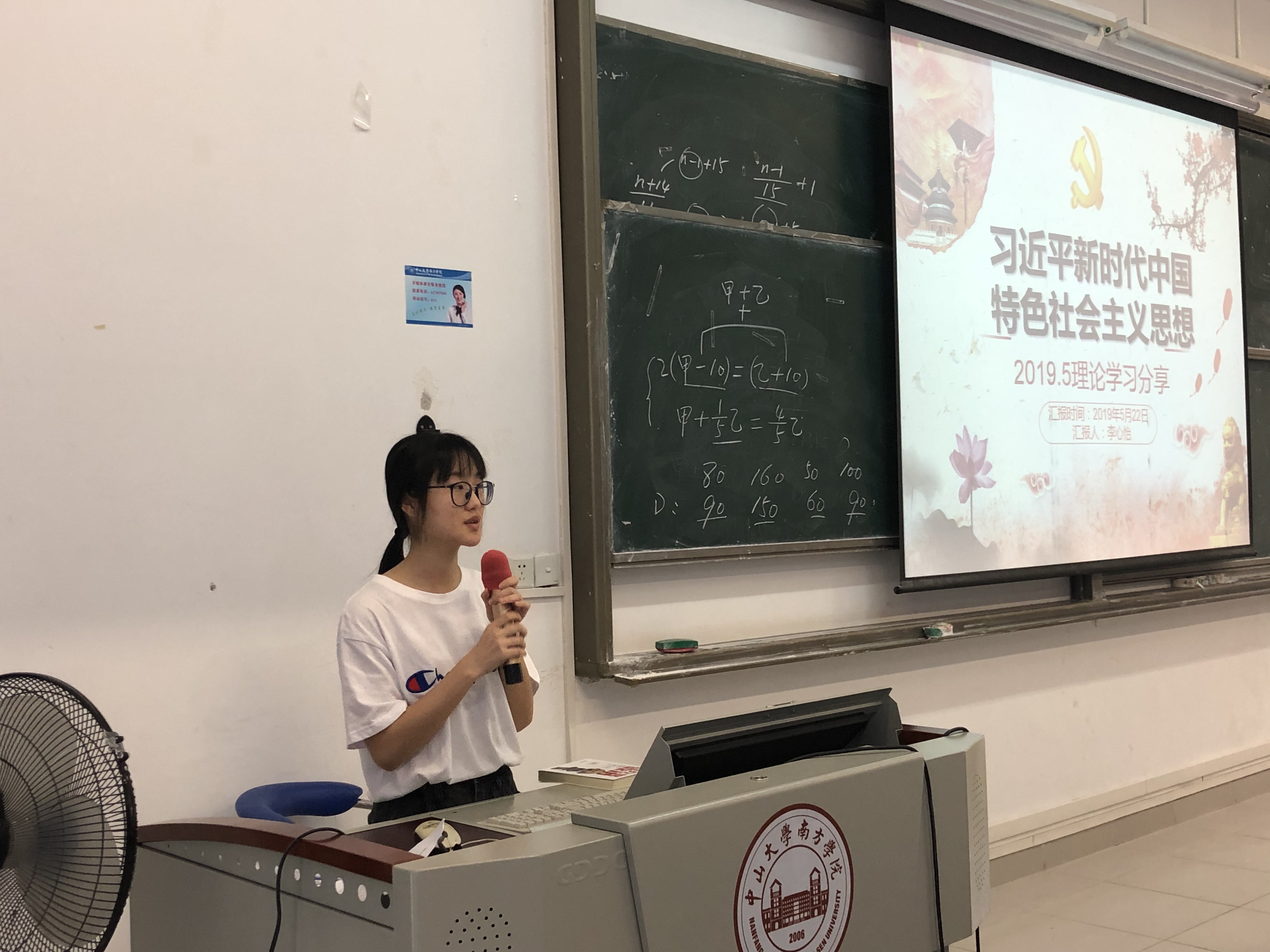 预备党员洪晓芸、何颖琪和李心怡同志分别以PPT展示的形式,与其他同志们共同分享学习“习近平新时代中国特色社会主义思想”。