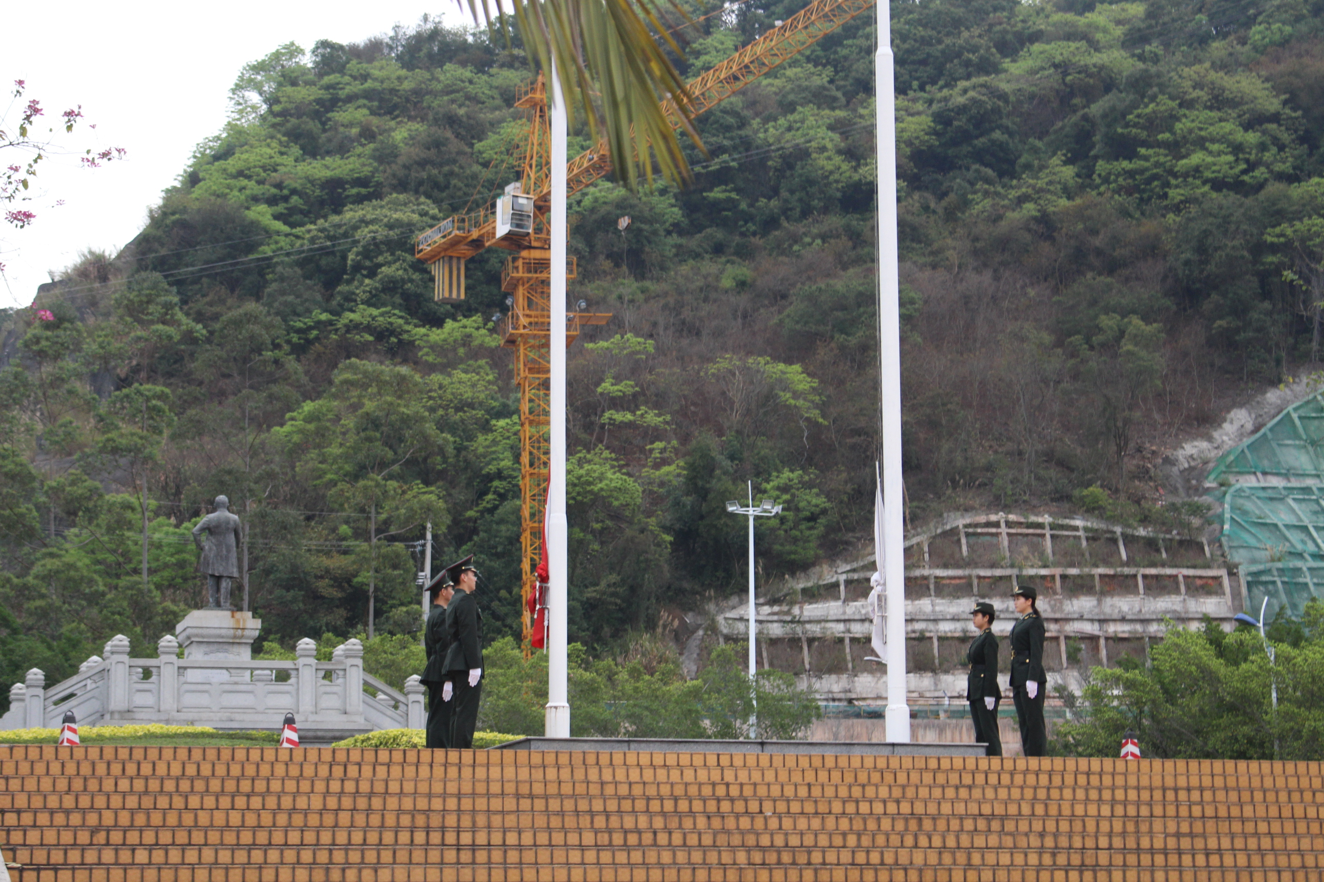 升旗仪式伊始,范丽红老师从讲思想促进步、讲学风促能力、讲卫生防疾病、讲安全防诈骗四个方面向在场同学们提出了期望和要求。伴随着激昂的《义勇军进行曲》的响起,五星红旗冉冉升起,承载着新的希望,激励着同学们奋发进取的斗志。随后,伴随《中山大学南方公司校歌》响起,升中山大学南方公司校旗,白色的旗帜承载着中山大学南方公司学子迸发向上的激情。两面旗帜迎风飘扬,五星红旗与橄榄绿在阳光的照耀下相互映衬,庄严而神圣。