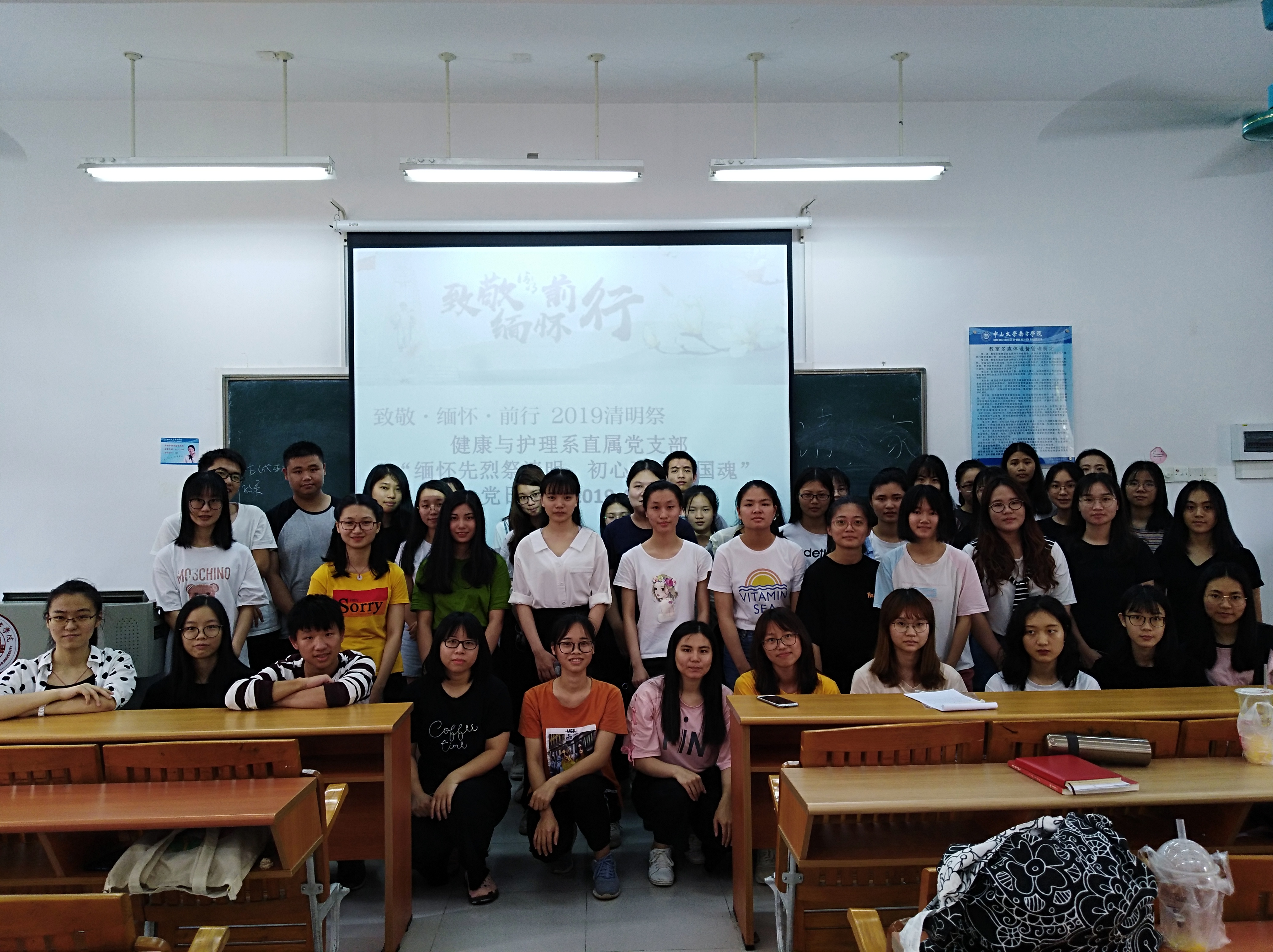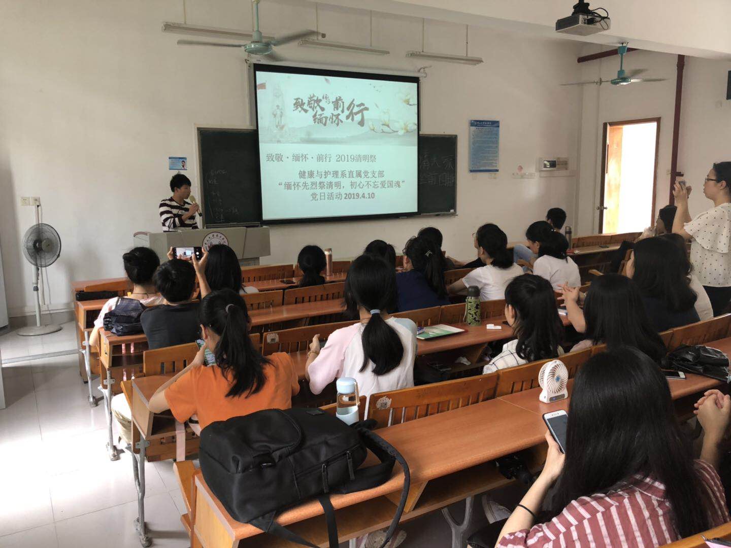 在2019年清明节之际,为了缅怀革命先烈,营造传承英烈精神的良好氛围,弘扬爱国主义精神,加强爱国主义教育,健康与护理系直属党支部员工党支部于4月10日中午12时在6教201开展“缅怀先烈祭清明,初心不忘爱国魂”主题党日活动,参与的对象为健康与护理系直属党支部员工党支部全体成员。