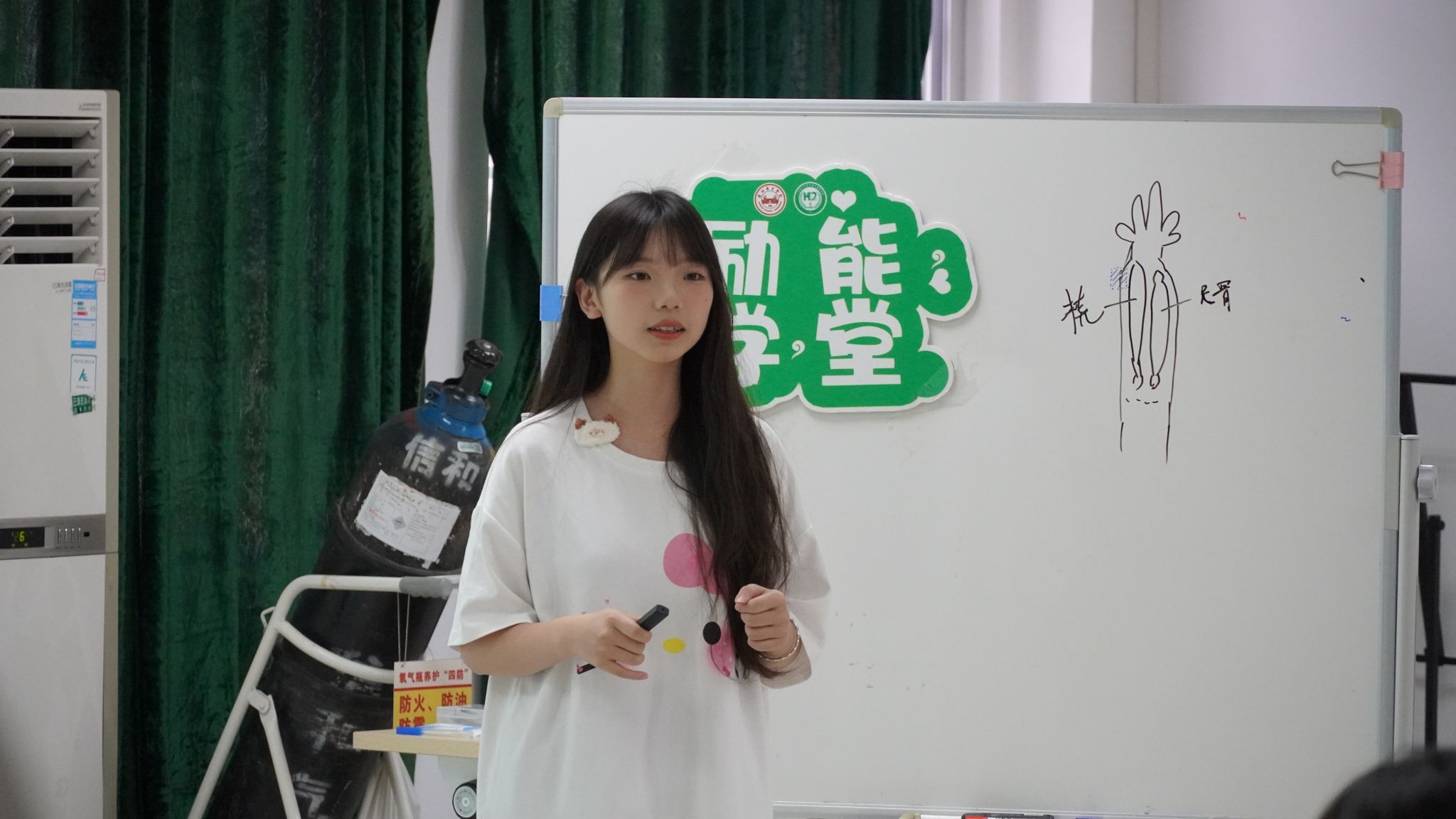 “体温、脉搏、呼吸、血压——这四项生命体征是评估健康的“黄金指标”。黄雅馨同学采用视频和图片相结合的直观形式,围绕体温、脉搏、呼吸和血压这四项生命体征展开详细地讲解。她不仅细致地向同学们展示了这四个方面的测量步骤和相关仪器的使用方法及技巧,还深入浅出地介绍了测量的原理、相关仪器的使用及其相关的医学知识,使抽象的理论知识变得直观易懂。在同学们提出问题时,小老师黄雅馨巧妙地将专业理论与实际操作相结合,通过形象生动的讲解方式,为同学们一一解答疑惑。