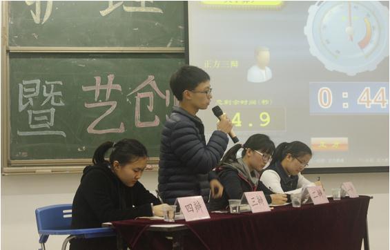 第一轮的辩论在“火车票无座票应不应该打折”的话题下拉开了数字媒体2班与艺术设计2班的交锋序幕,正方数字媒体2班毫不示弱地向反方艺术设计2班投掷了多颗重磅的问题“炮弹”,而艺术设计2班也以铿锵有力的姿态反击数字媒体2班的层层“包围”和“封锁”,激烈的气息瞬间在偌大的教室弥漫开来……一场杀人于无形的焦灼的拉锯战的战果在双方的唇枪舌战中渐渐明朗,正方以最后有力一击赢得了胜利,而“最佳辩手”则由反方三辩获得。