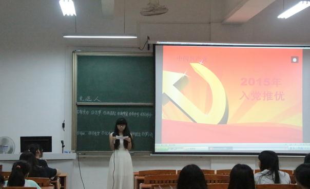 9月28日晚7点半,健康与护理系14级入党积极分子推优大会在11教306顺利举行。健康与护理系团总支书记林晓兰老师、教学秘书黄丽平老师、辅导员杨思杭以及14级全体员工共同参加了此次活动。