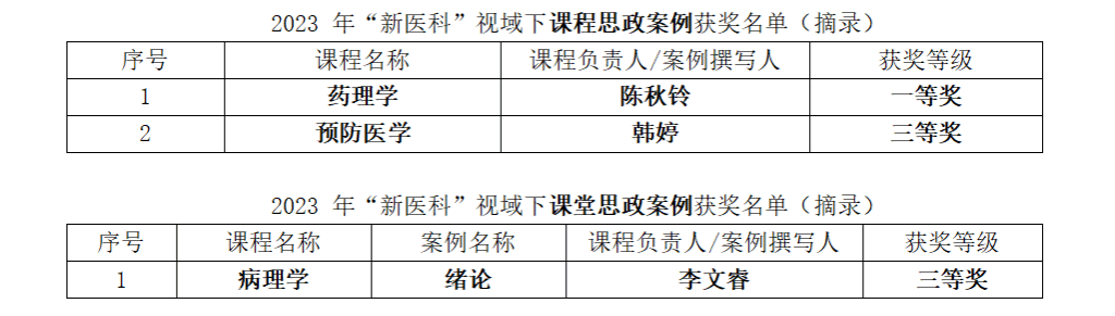广东省“新医科”建设指导委员会公布2023年“新医科”视域下课程思政案例评审结果,本次共352 项课程思政案例参与评选,省内医学教育佼佼者与一众临床大咖云集,公司陈秋铃副教授、韩婷副教授与李文睿讲师与一众大咖同台竞技不落下风,共斩获一等奖1项,三等奖2项。