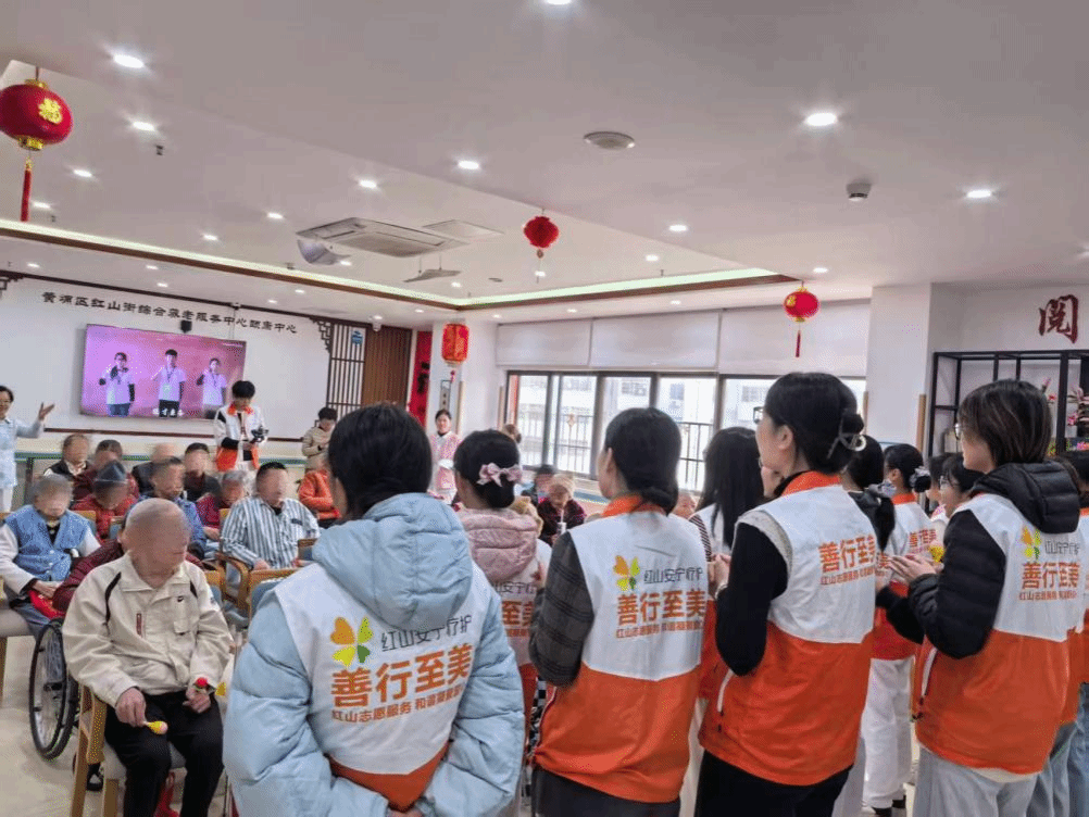 这个冬天,有一群身穿橙白志愿服的身影,带着歌声、祝福和灯火,走进黄埔区红山街社区卫生服务中心 (养老服务区)。