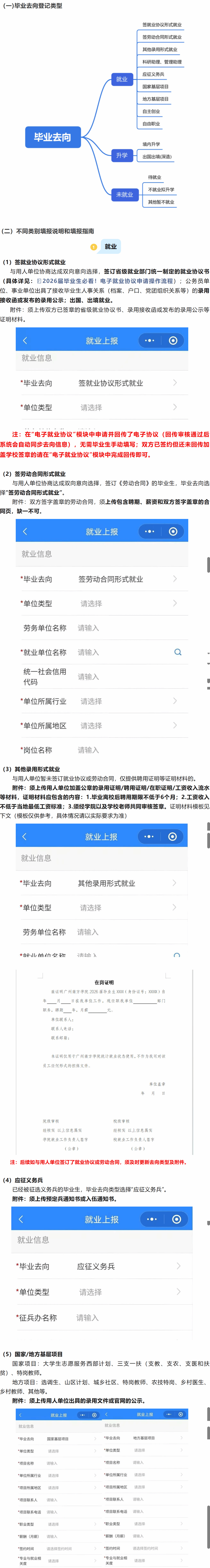 二、去向登记类型及填报指南