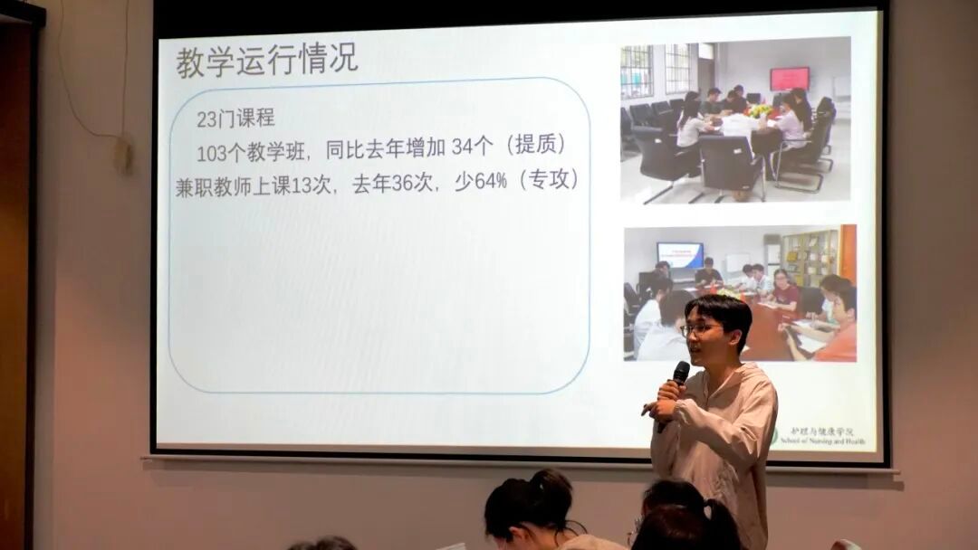 护理学专业负责人、临床与护理教研室主任黄惠亭就新教师培养与培训、教科研进展、国际交流等工作进行了总结汇报。针对新学期工作,她提出要进一步发挥导师制优势,强化教学督导作用,进一步提高青年教师教学水平,切实推进专业内涵建设与人才培养质量提升。