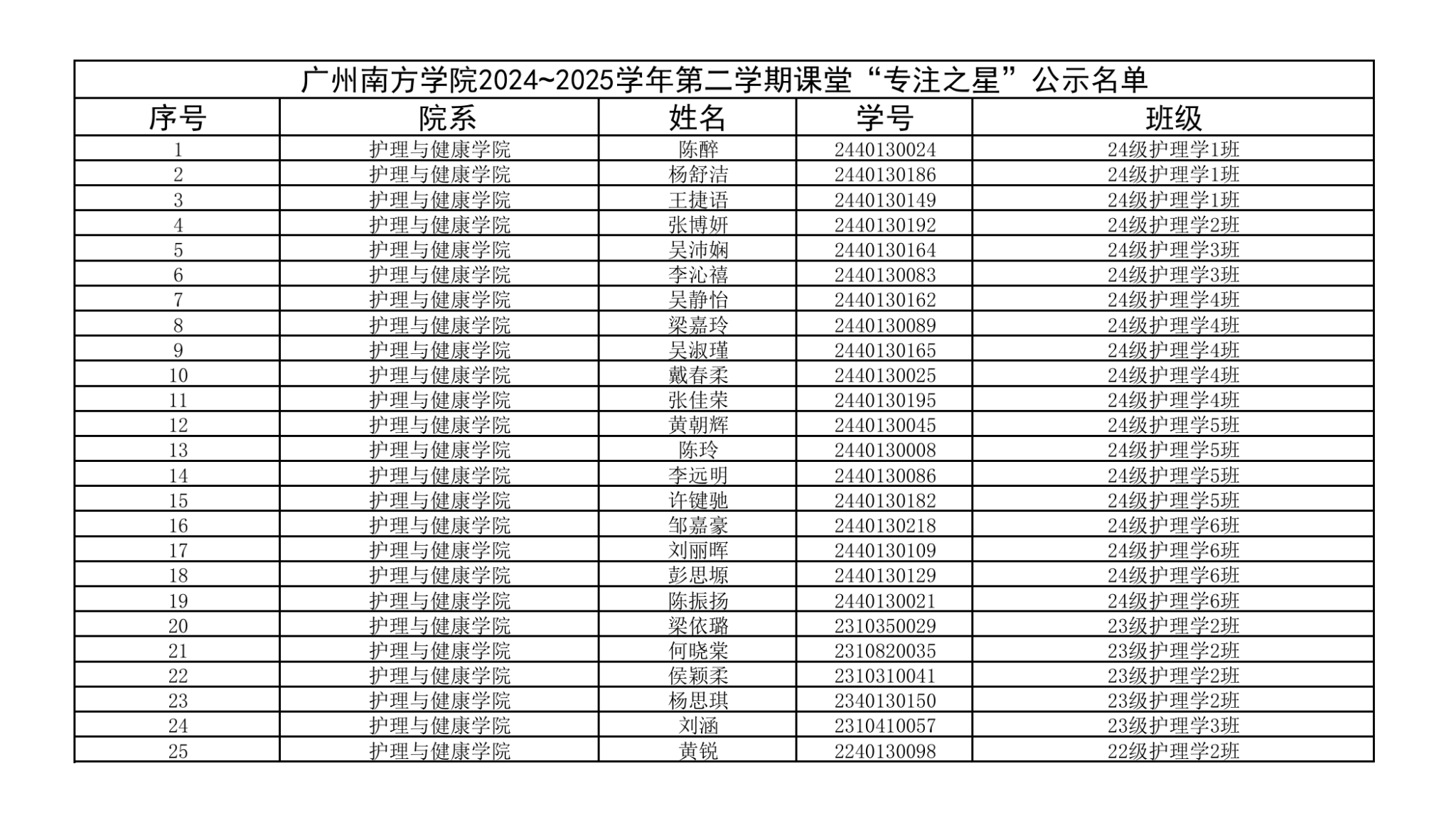 经个人申请、院系小组审核,现将2024-2025学年第二学期“专注力”培养项目获评课堂“专注之星”名单进行公示。