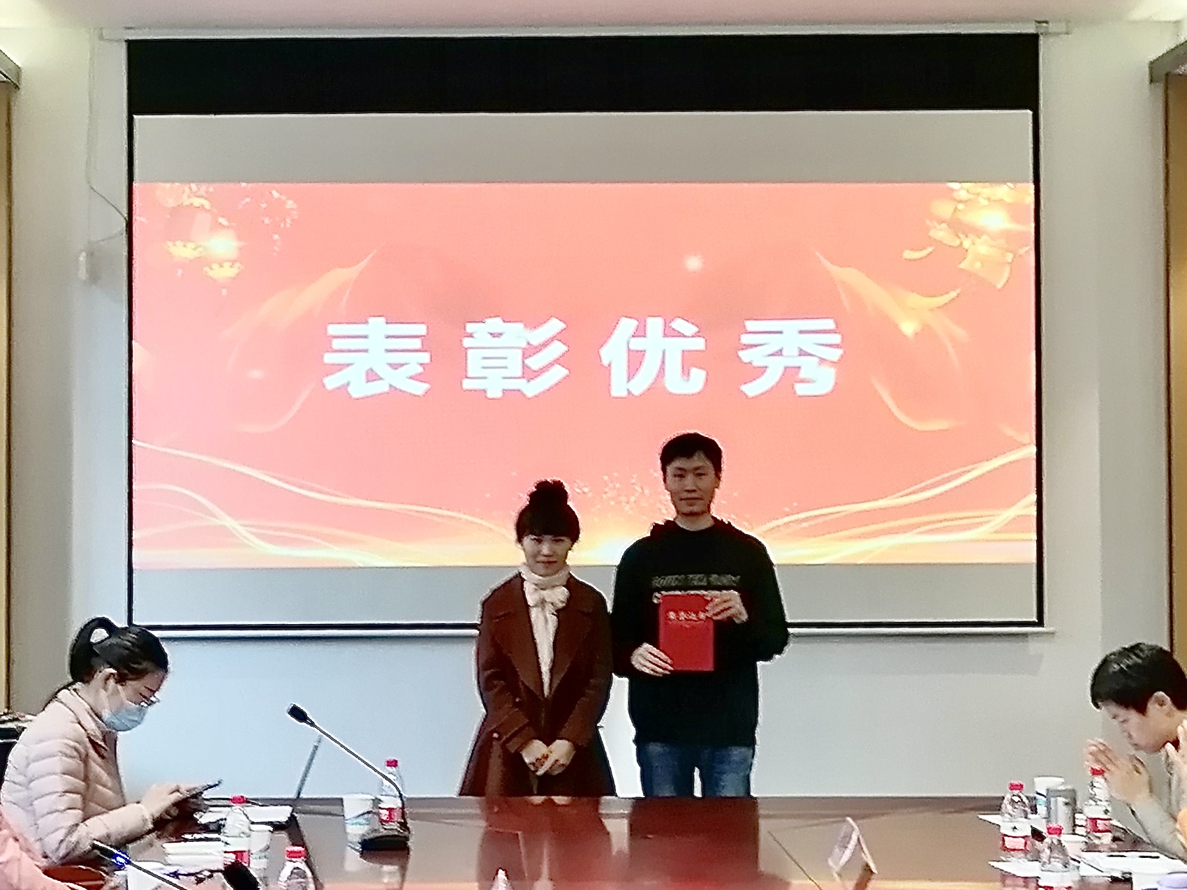 新学期工作计划汇报结束后,公司对上学期教学科研工作中表现突出的教师进行表彰并颁发荣誉证书。