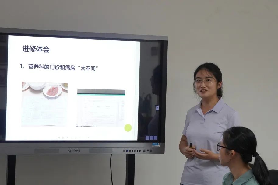 林思婷老师分享了她在进修前先设定进修目标,如学习常见的呼吸系统疾病基本的临床表现、整体的治疗方案和护理的疗程。她提到,此次进修提高了自己的专业素养和知识储备,对临床工作更加清晰化,也了解到教材与临床的发展有一定差距,通过进修学习了最新的治疗方式和护理手段,在一定程度上弥补了教材内容的局限。同时通过临床进修收集教学素材,丰富教学资源和内容,使教学素材更贴近临床也更有深度。