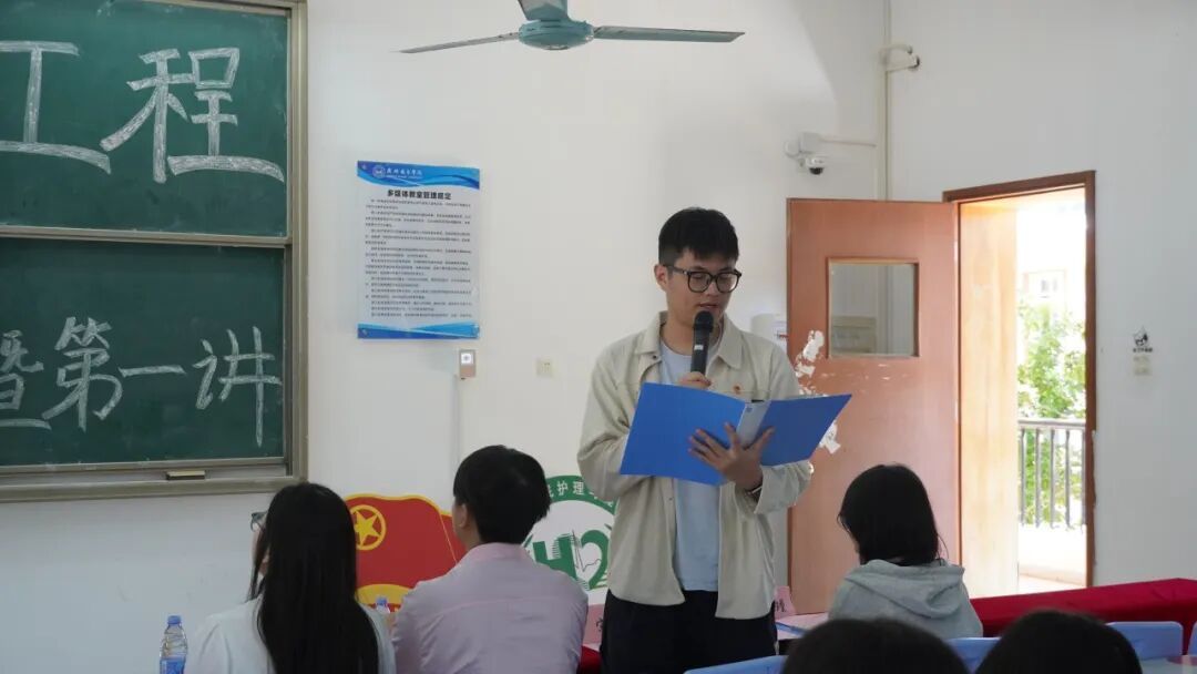 团委书记宋唐老师为本次培训致辞。他表示,南丁格尔精神的提灯照亮了护理事业的初心,马克思主义的真理之光则为青年指明方向。同时,宋唐老师强调,在本期培训中,学员需做到以下三点:一是坚定理想信念,筑牢思想之基;二是锤炼过硬本领,练就成长智能;三是主动担当作为,争做先锋之辈。最后,他希望学员们能够扎实学习专业知识,积极投身公司建设、志愿服务与乡村振兴各项工作,为国家富强、民族振兴、人民幸福贡献青春力量。