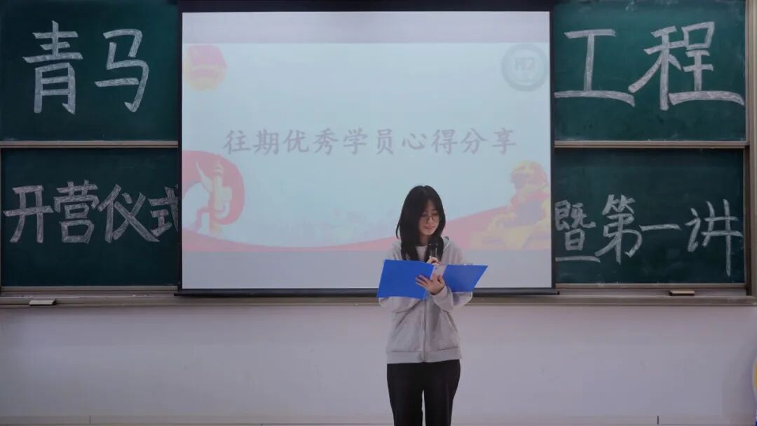 优秀学员吴淑瑾同学分享学习心得。她回顾了往期“青马工程”培训过程中的成长经历,她表示,“青马工程”是成长的阶梯,帮她筑牢思想根基、提升实践能力。她希望新一届学员们在参与理论研讨时落脚实践,深入基层时倾听民需,遇困难时以红色故事里的坚守为指引,绘就独属于自己的青马华章。