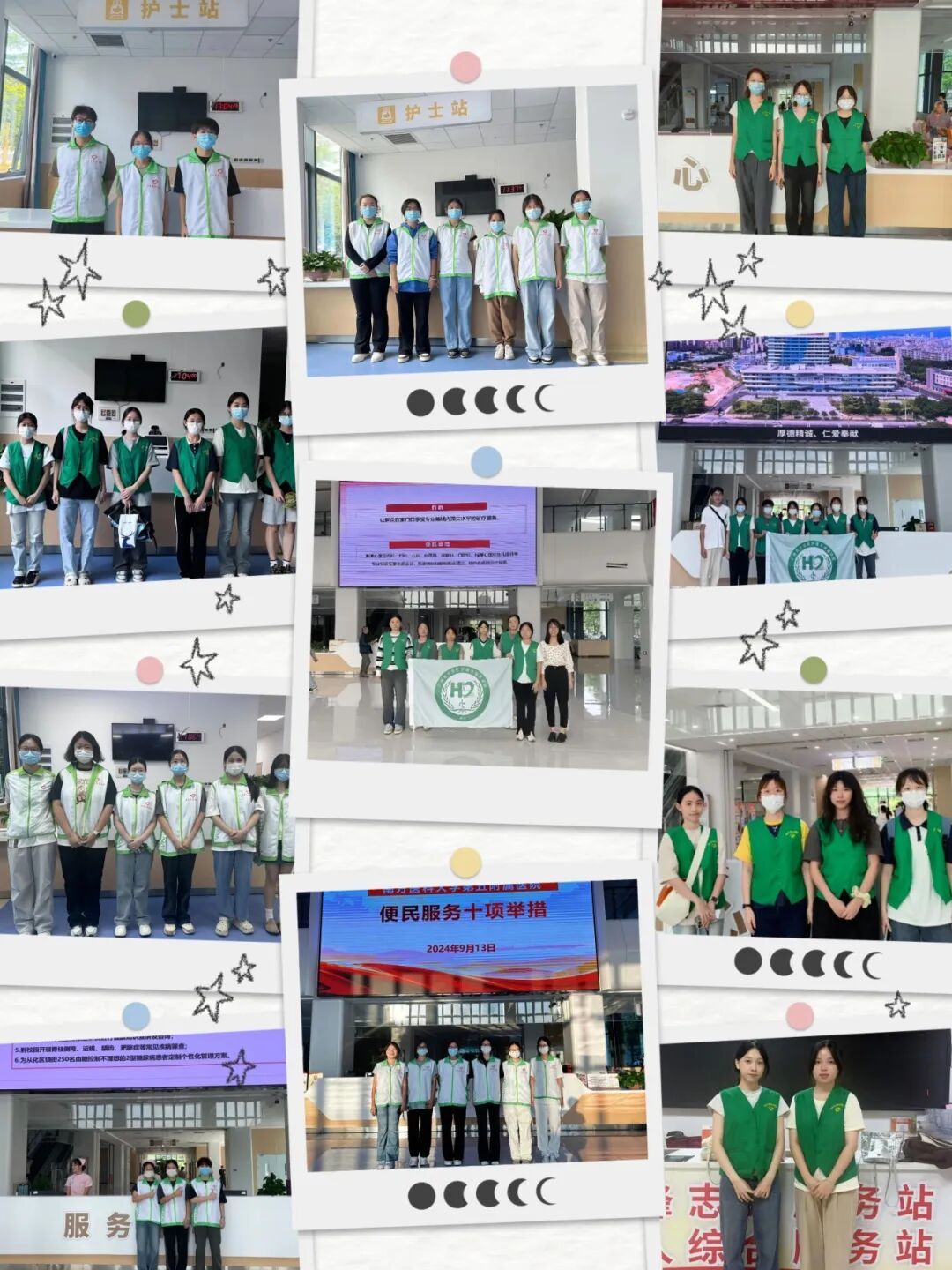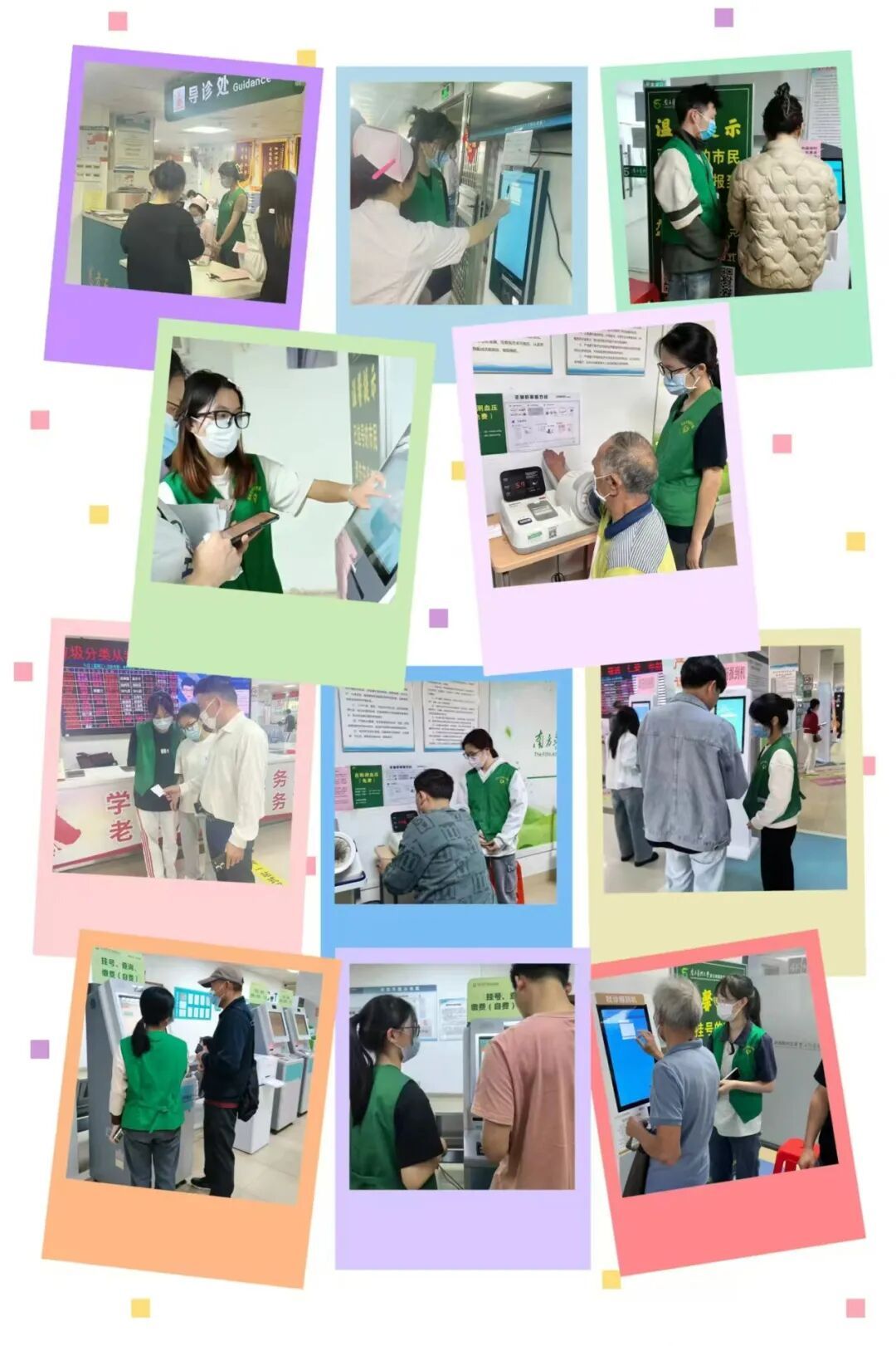在一楼的导诊台和门急诊挂号处,忙碌的身影交织着;在超声检查排队区,焦急的等待被耐心的安慰所缓解;在取药报到机旁,指引的声音清晰而温暖;在药房窗口,细致的服务传递着关怀……在南方医科大学附属第五医院有这样一群特别的身影,他们身着绿马甲,用专业知识和热情为医院增添了一抹温暖的色彩,他们来自伟德betvlctor1949源于英国,由护理学专业各年级员工组成。