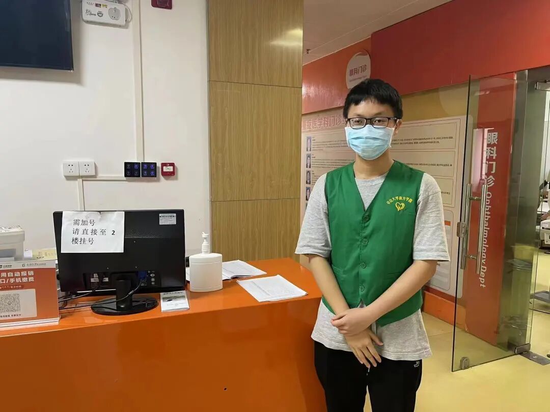 今天,是我第一次参加医院义工志愿活动。我被安排在眼科负责帮助病人进行挂号,引导病人通过自己手机上的挂号信息或现场的挂号号码进行报到。