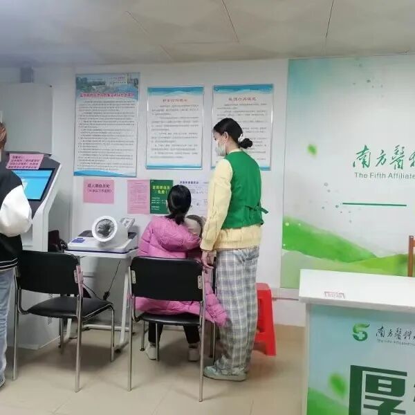 我被安排到了四楼导诊台旁帮助病人量血压、预约报到以及引导候诊。经过护士姐姐几分钟的讲解以及任务交代,我很快熟悉了流程。由于今天是周末,来到医院寻诊的病人很多,缴费窗口、自助机旁、量血压处以及各个诊室外都排起了长队,而我也一刻都没有闲下来过。由于我不会粤语,在服务过程中也遇到了与老人无法正常沟通的难题,但好在有热心的病人和护士姐姐会帮我翻译解释。