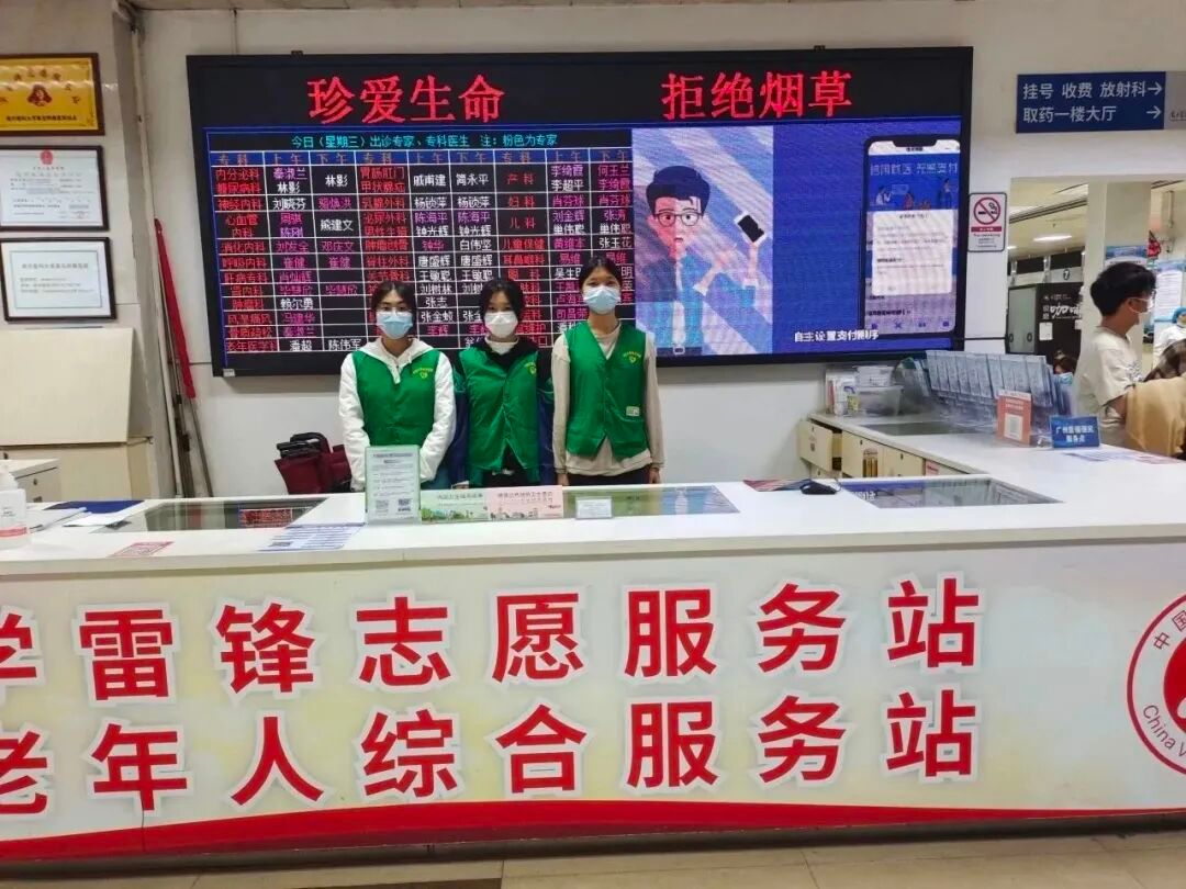 在这期间,我看到了焦急的母亲抱着正在哭泣的小孩,也看到了腿脚不便的老爷爷用那老花的眼睛紧紧的盯着屏幕,他们都希望下一秒可以看到自己的名字出现在显示屏上,奈何前面排队等候的人数太多,他们只能看了一遍又一遍,他们也许着急做下一项检查,也可能着急回家。时间过的很快,在准备结束的时候,还有患者问我如何报到取药,我当时都不想脱下志愿服,想着能不能一直帮助他们。