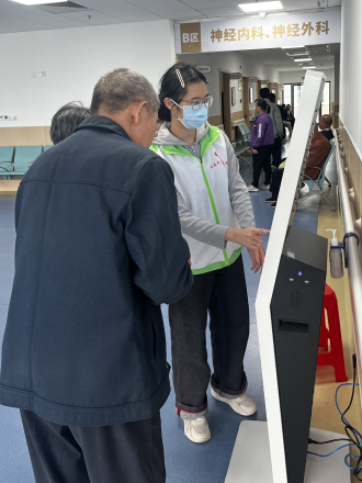 初上岗时,我面对自助报到机的操作流程及患者急切的就医心情,稍显忙乱。神经内科的患者多为老年人,不少伴有肢体活动不便或认知功能减退,对智能设备操作尤为陌生。有位拄着拐杖的老爷爷反复尝试操作却未能完成报到,脸上满是焦虑与无助。我耐心上前,逐步放慢语速引导他操作屏幕、输入信息,最终协助他顺利完成报到。当老爷爷布满皱纹的脸上露出感激的笑容,反复说着“谢谢你,小姑娘”时,我真切感受到自己付出的价值,也更加坚定了用心服务的决心。