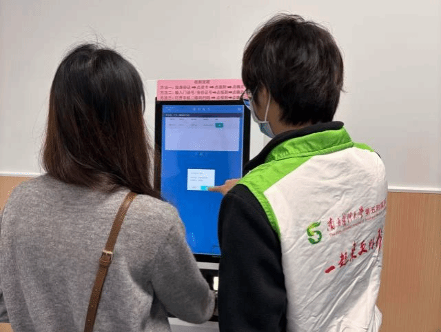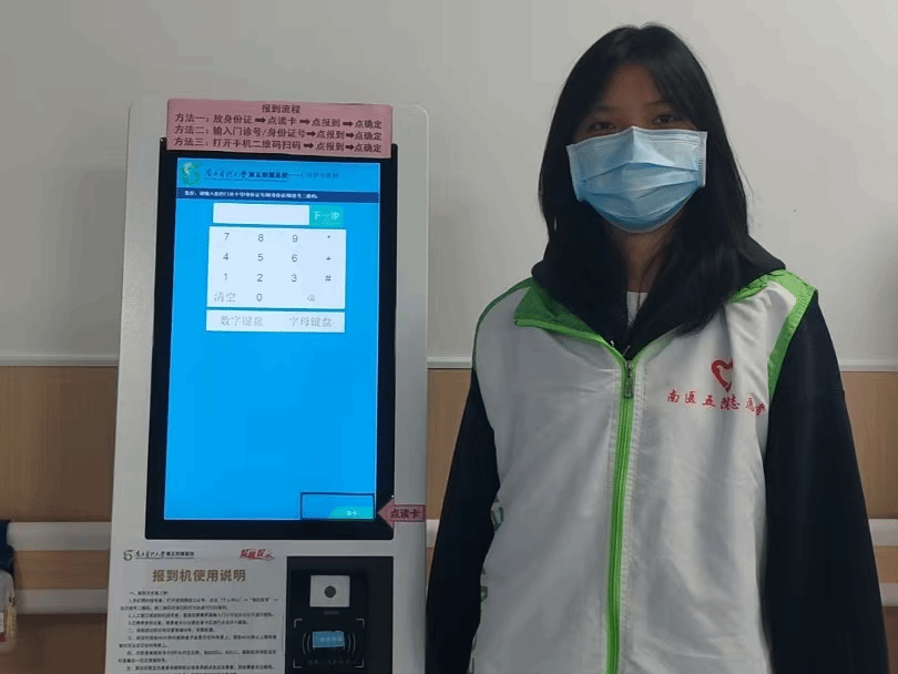 非常高兴再次来到南方医科大学第五附属医院参与义工服务,这次我被安排在A区耳鼻喉科,主要负责协助患者在报到机完成报到、使用自助机缴费,并为患者指引治疗室的方向。