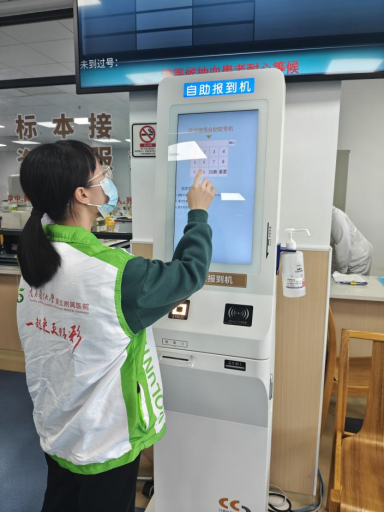 在南方医科大学第五附属医院,我开启了一段意义非凡的义工经历。报到时,我被分配到了四楼大厅的自助机旁。护士老师细致地为我讲解了自助机的操作流程、常见问题处理方法,以及与患者沟通的注意事项,让我快速掌握了服务要点。
