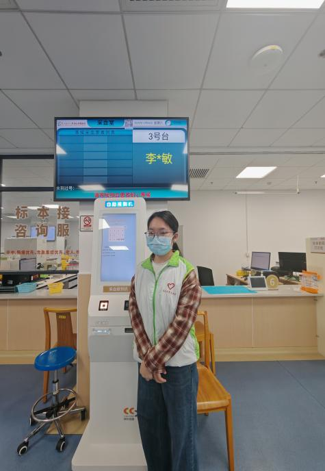 我的工作是协助核对就诊信息、指引报到。印象里我遇到了一位叔叔,在报到机上的操作不熟悉,一下子弹出来的多条报到信息让他不知道该按什么按钮,在我解释下,他才明白的原因,他连声道谢时眼里的安心,让我忽然明白,报到处的引导不只是流程辅助,更是给患者的“定心丸”。我也学会了更耐心,遇到耳背的老人,会凑近些慢慢大声些说;看到焦虑的家属,会主动解释等待时长。