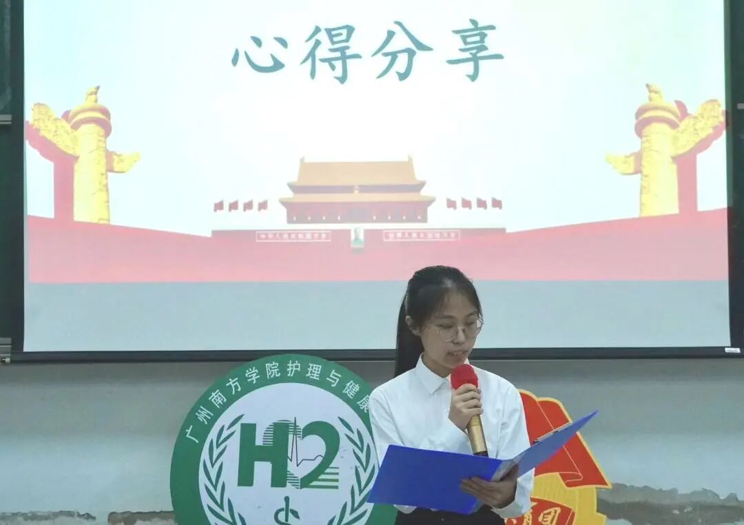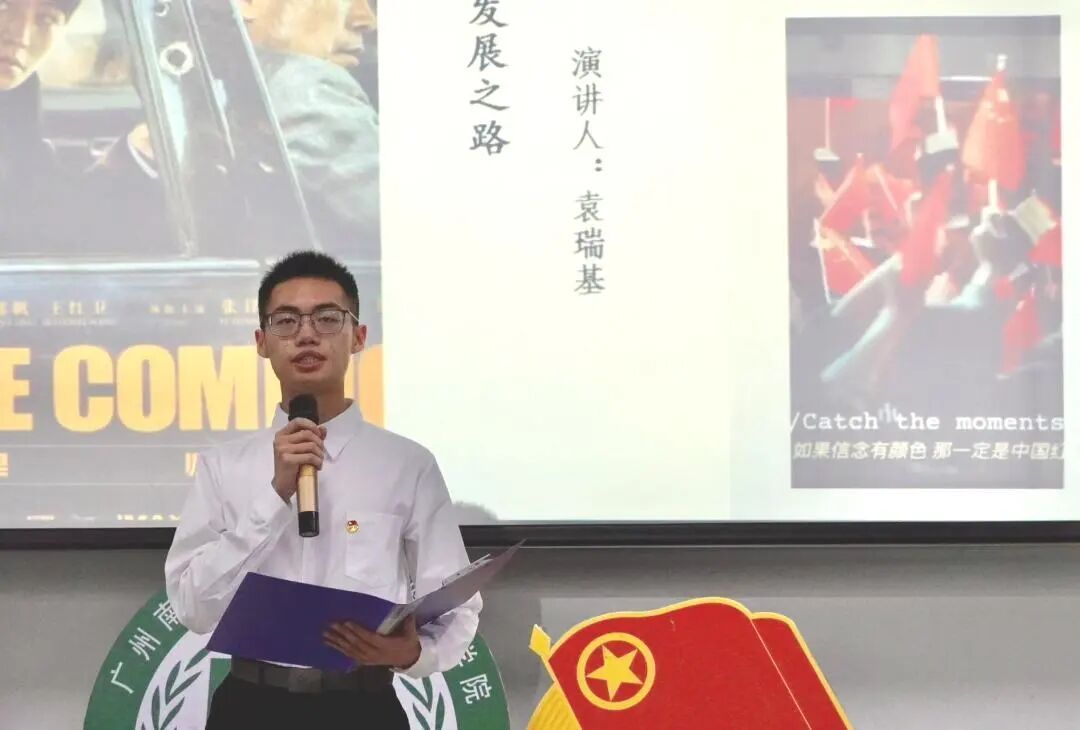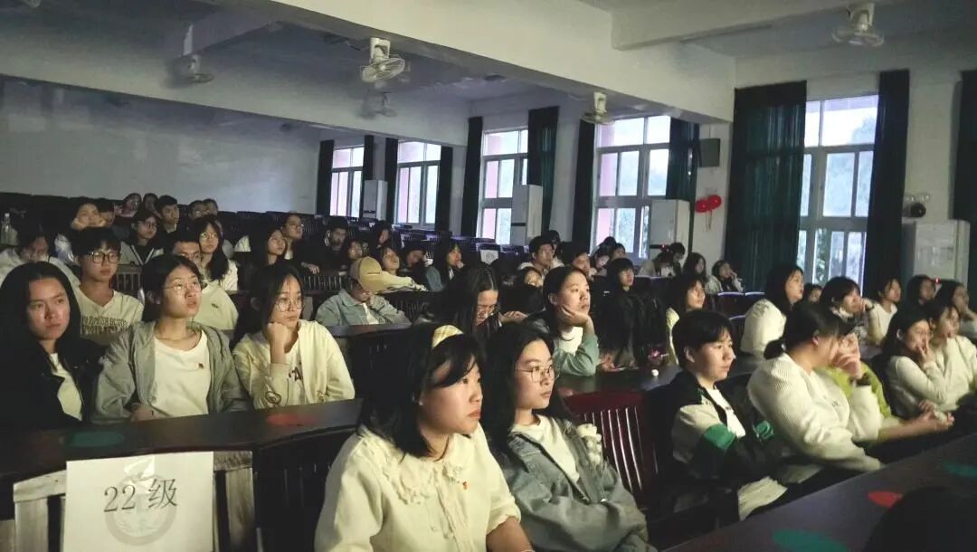 伴随着团歌旋律的落下,本次活动正式拉开序幕。田珍珍老师上台讲话。田老师说到,希望同学们认真观看影片,通过观影感受新时代祖国的强大力量,提升自我认同感和民族自豪感。同时增强使命感和责任感,以更加饱满的热情投身学习与工作中,为中华民族伟大复兴的中国梦添砖加瓦。