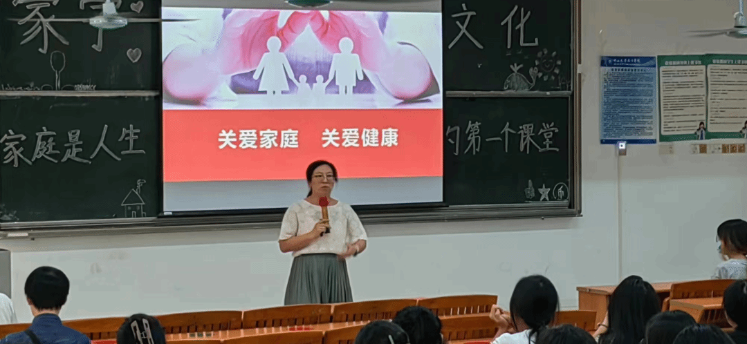 韩婷老师通过引用新闻案例,告诉同学们家庭的健康不仅体现在家庭成员之间的关系和睦,还包括家庭成员各方面的健康。她从环境健康、饮食健康、行为健康以及生理健康等方面展开阐述,引导同学们多学健康知识,做好健康管理。