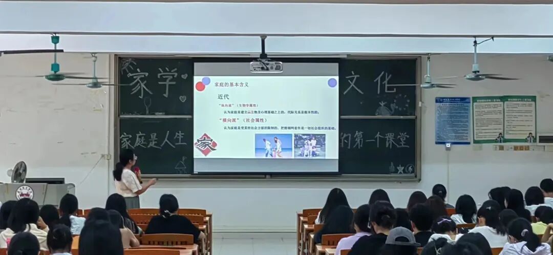 韩婷老师以我们的家庭角色为切入点,启发同学们思考“什么是一个家庭周期的开始”。她讲述了“家”在不同时代、不同国家的意义,并引用习近平总书记的家语“家庭是对社会有意义的部分,是我们社会最基本的细胞”,强调家庭教育和家庭和谐的重要性。韩婷老师说到,“家学”是构造美好家庭的根本,她详细介绍了“Family”拆分法,并以核心家庭为例,讲述家庭周期的起始点及周期结束。