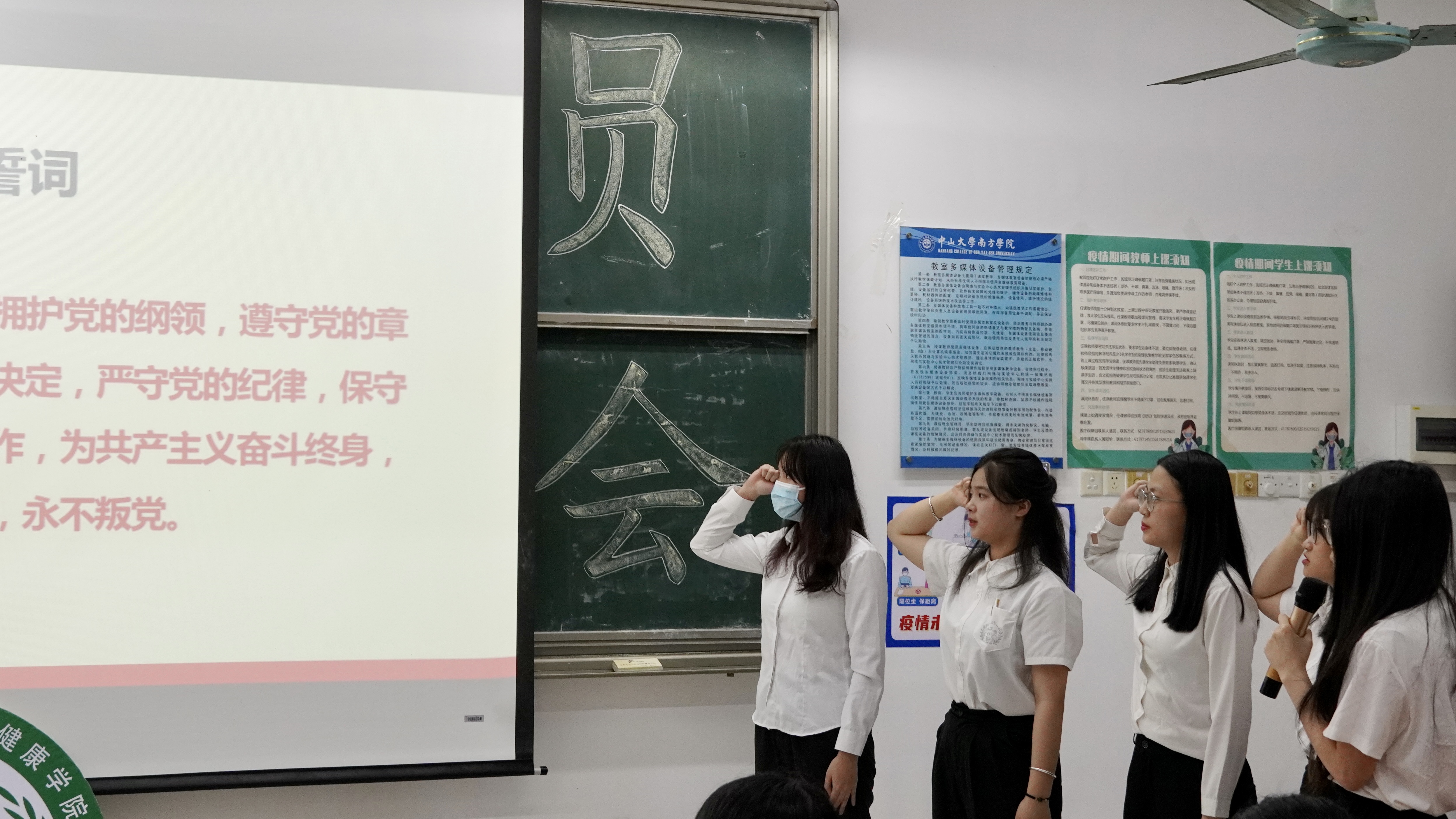 陈洁同志带领9位预备党员举行庄严的入党宣誓仪式,全体党员也一起重温入党誓词。