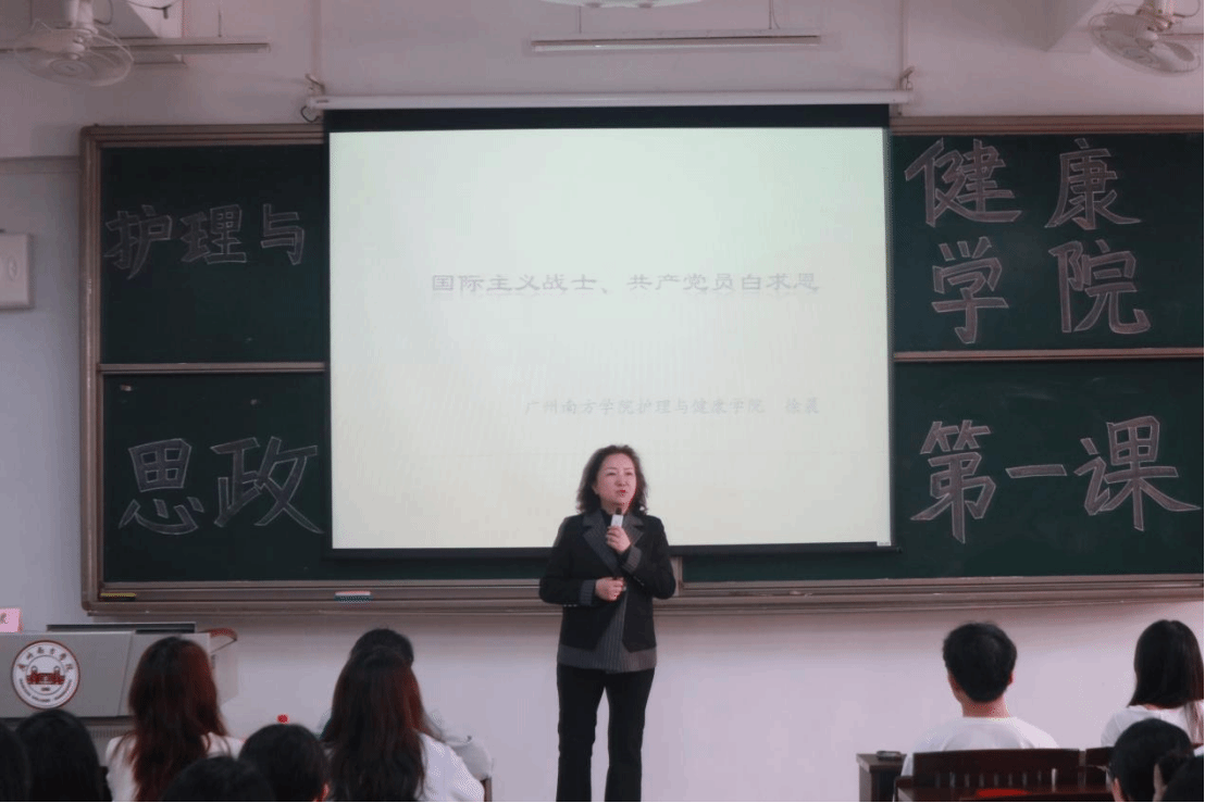 课上,徐经理以视频的形式生动阐释了白求恩精神的内涵,引导同学们认识白求恩精神。她介绍道,白求恩同志加入加拿大共产党,一心为人民服务,不远万里来到中国,投身于艰苦卓绝的抗日革命之中,用实际行动诠释了“天下兴亡,匹夫有责”的深刻内涵。