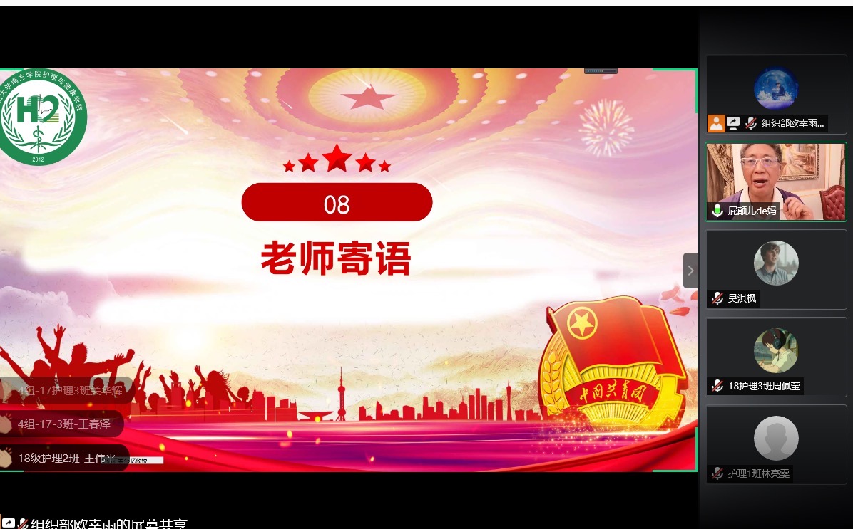 待各班团支部汇报结束后,公司方郁文老师做出点评。方老师表示,对各团支部杰出的专业能力感到十分满意,不论是在PPT的制作、VCR的制作或是党团建设等方面都做得非常好,从中都能感受到同学们的活力和支部凝聚力。方老师鼓励同学们在未来要继续保持着党团凝聚力,弘扬五四精神,同时结合南丁格尔的精神,在护理行业上持续发光发热。
