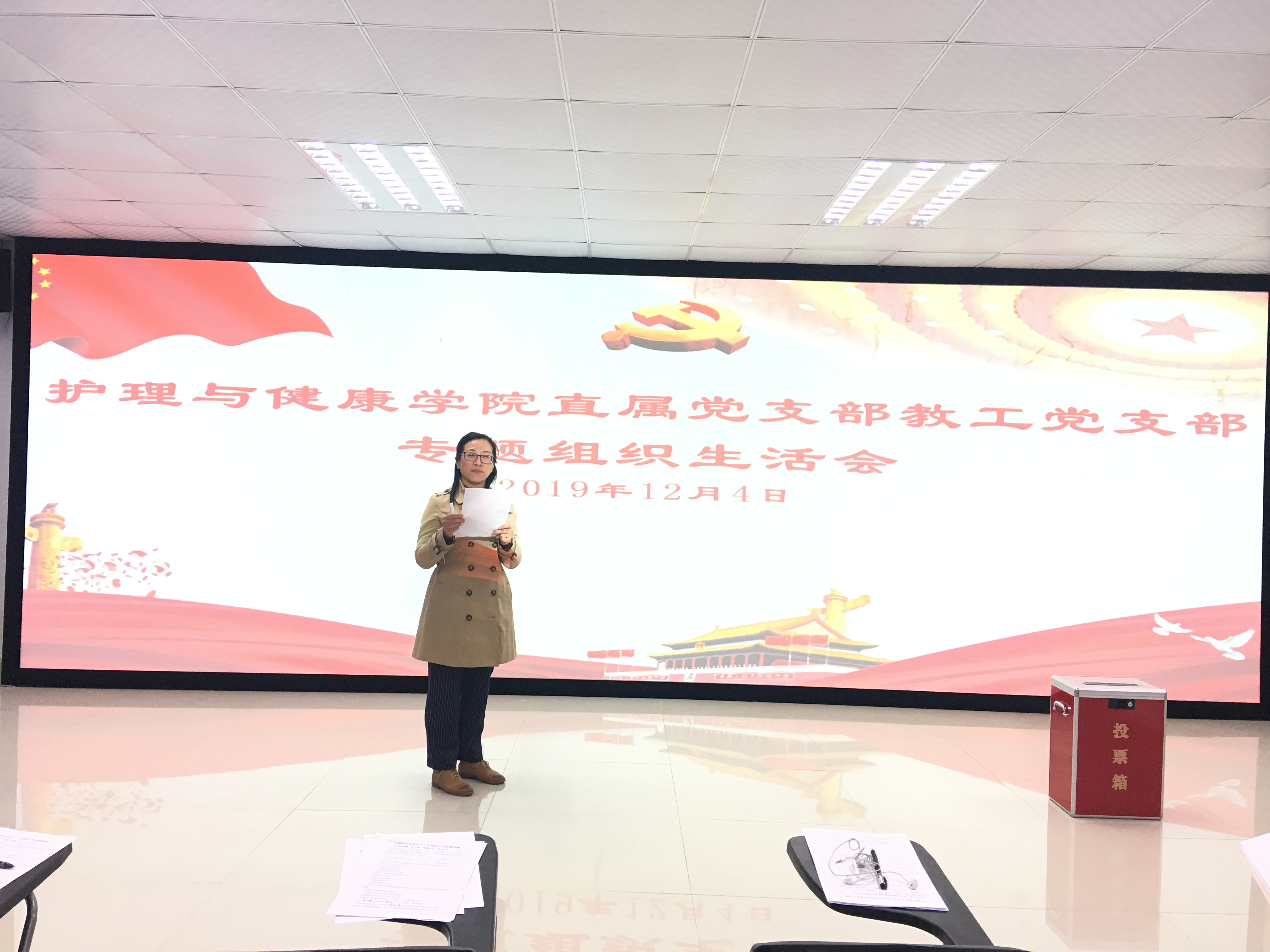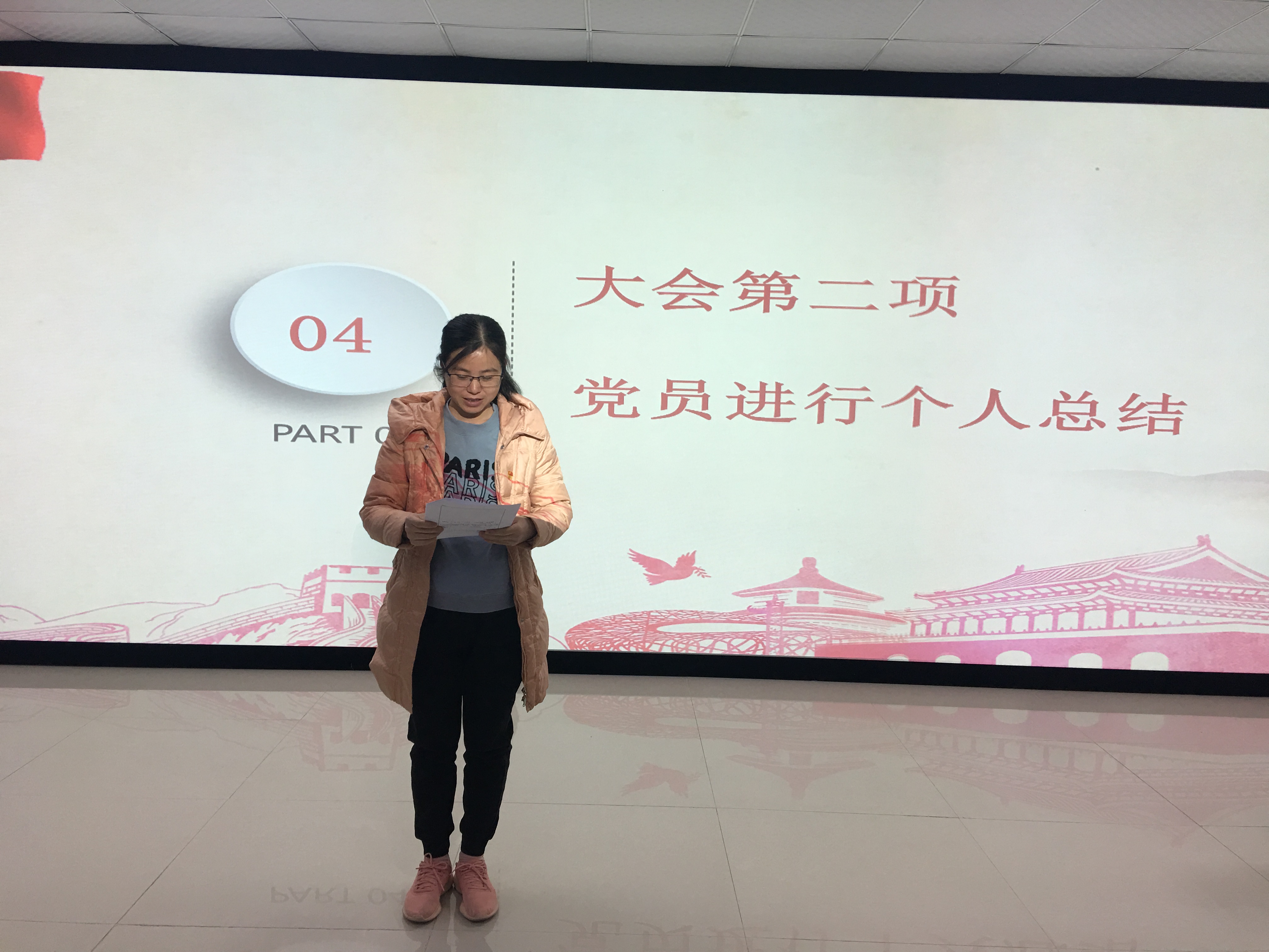 在此项议程中,教工党员上台,对照党员权利义务等进行自我总结。各位党员同志在党支部的正确引领和培养下,严格要求自己,圆满地完成了各项工作任务,但是在党员作用的发挥上还有待提高,社会服务亟待加强。