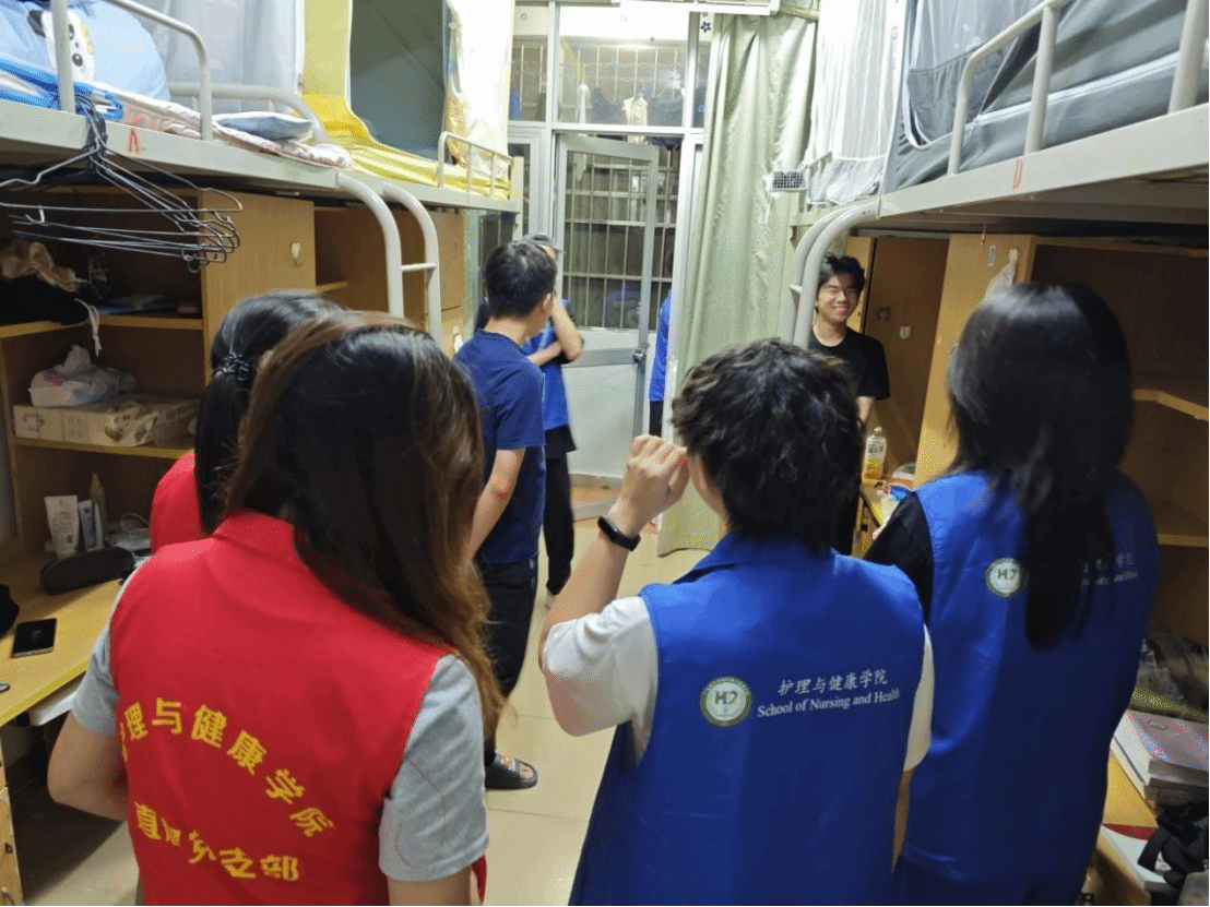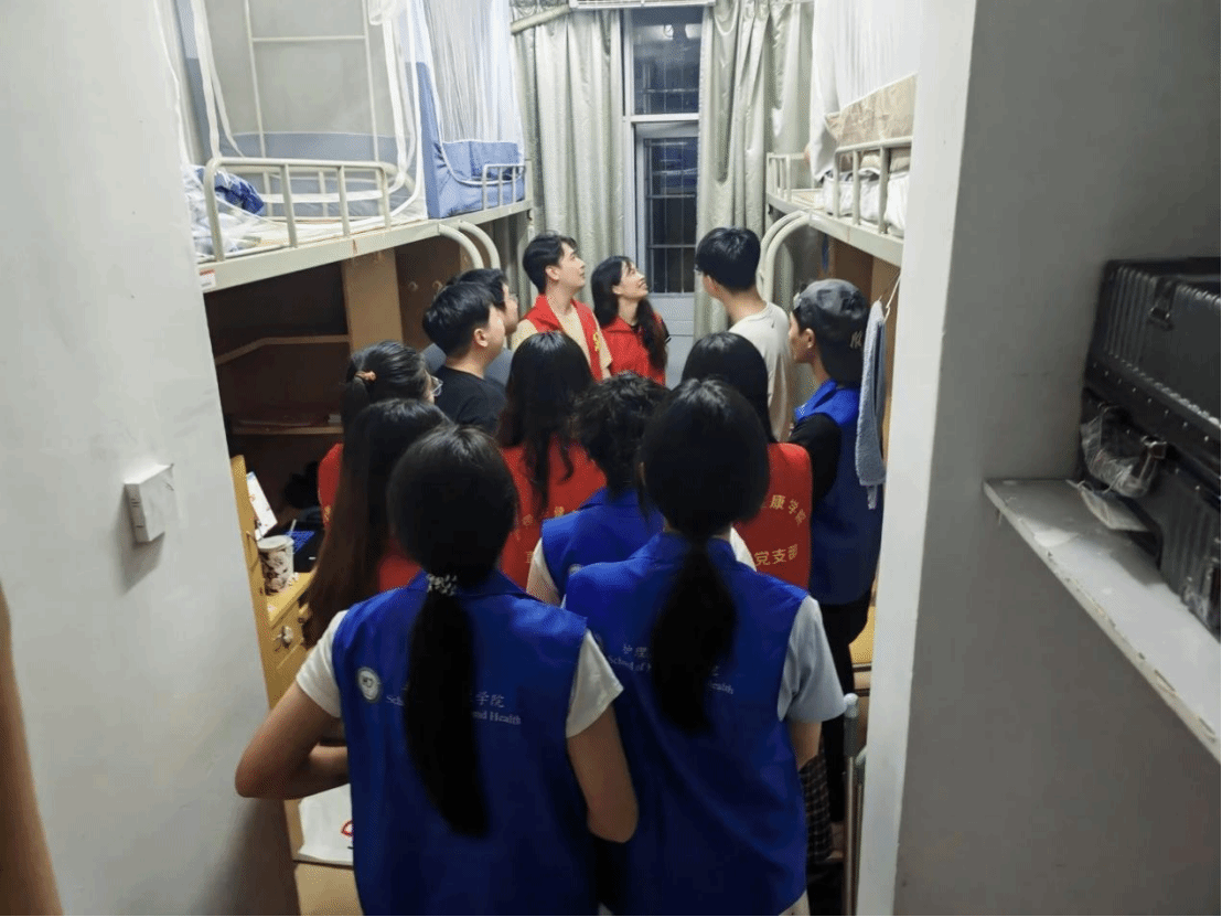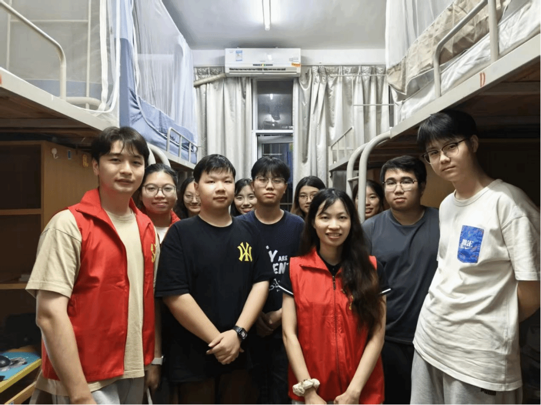 当晚,何送妹老师和李金豪老师便带领着在公司党员与朋辈辅导员,开启了新生宿舍的走访之旅。面对新生提出的 “专业课程怎么安排”“食堂就餐有哪些方式”“社团报名什么时候开始” 等疑问,两位老师和学长学姐们细致解答的同时还主动分享校园生活小技巧。他们脸上始终挂着温和的微笑,亲切的语气、贴心的叮嘱,慢慢缓解了新生初入校园的陌生感与紧张情绪,让新生们倍感安心。