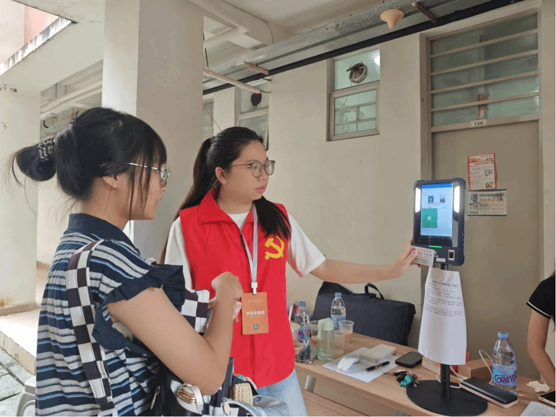 在这承载着满心期许的 “初遇” 时刻,迎新现场的宿舍区与报到处,四位老师始终耐心等候,细致回应新生的每一个疑问。一群胸前闪耀着党员徽章、身着志愿服的身影,更成为现场最动人的风景。志愿者们怀揣滚烫的热忱奔赴迎新前沿,以实打实的行动坚守初心、践行使命,肩扛手提帮新生搬运行李,从宿舍楼下送到宿舍门口,为初来乍到的新生们搭建起一条满含暖意、畅通无阻的入学通道。
