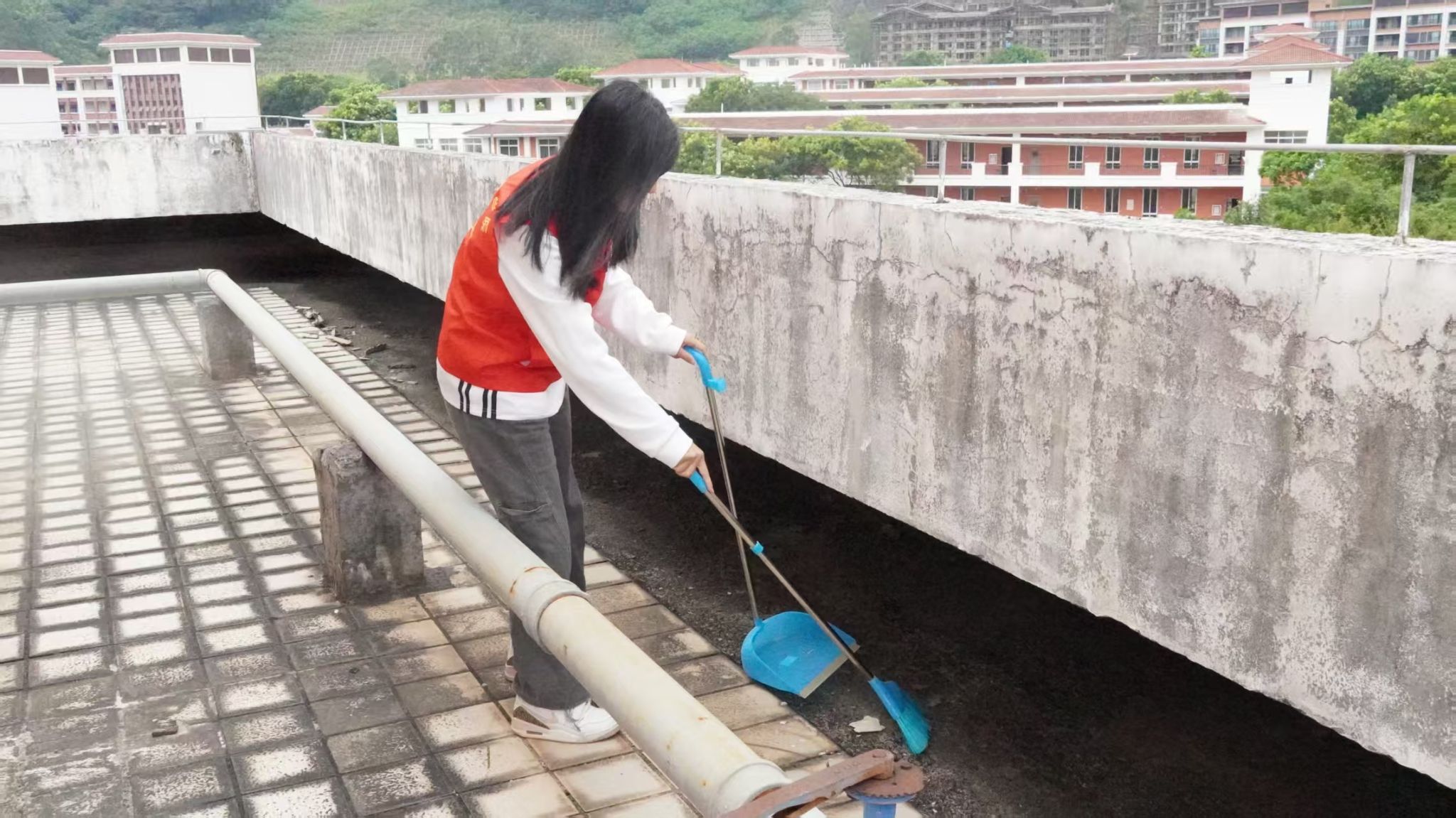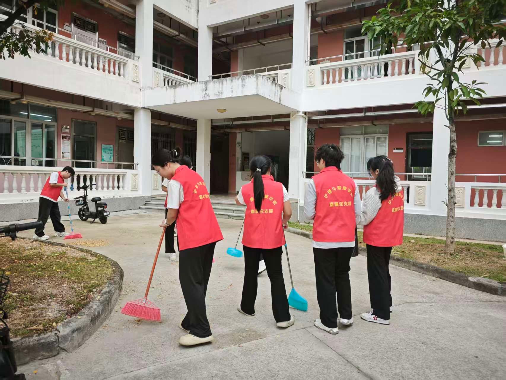 党旗所指,行动所向。公司党支部志愿者们于31日上午来到11号教学楼开展校园清扫活动。志愿者们共同努力,校园面貌焕然一新。在教室内,他们俯身擦拭,让课桌、讲台、椅凳洁净如新,不见积尘;公共区域里,他们全面清扫,将落叶与杂物被彻底清除,走廊与楼梯干净整洁。