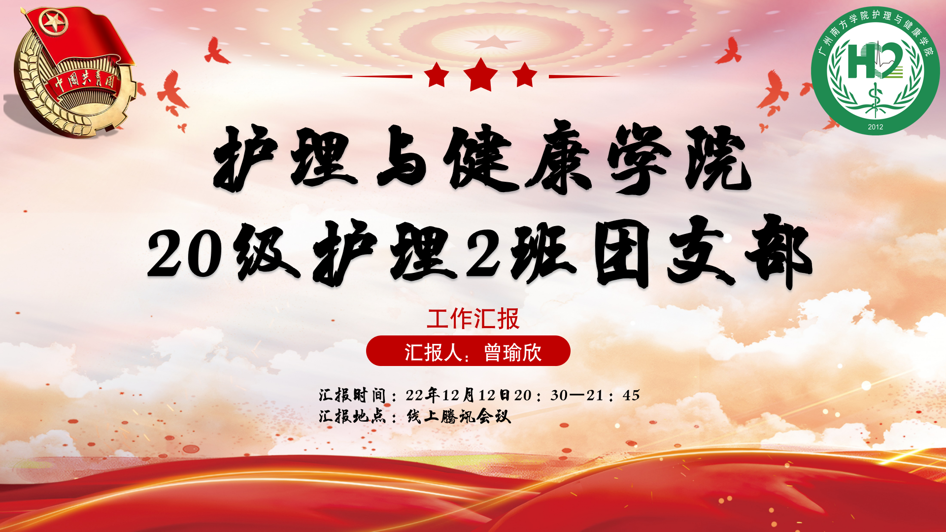 各班团支书依次进行工作总结汇报。曾瑜欣同学说到,2020级护理2班团支部通过多样化的形式开展主题团日活动并取得有效成果。支部组织的团日活动输出内容丰富,紧跟时事新闻,活动后进行总结与自省;支部成员积极学习党团知识,每期青年大学习参学率均达100%。这些都是支部全体成员共同努力的结果,应当继续保持。