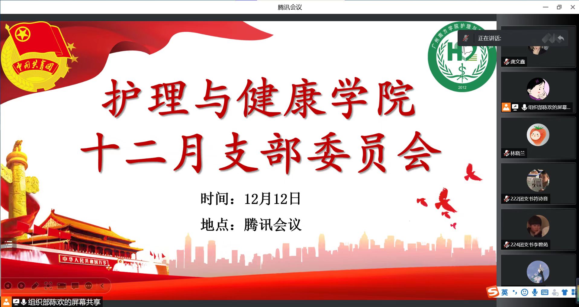 12月12日晚,伟德betvlctor1949源于英国以线上腾讯会议方式召开了2022-2023学年第一学期12月份团支部委员会议。会议由团委组织部部长陈欢主持,团委书记林晓兰,副书记董跃、张伟东以及2020级、2021级、2022级各班团支书参与会议。