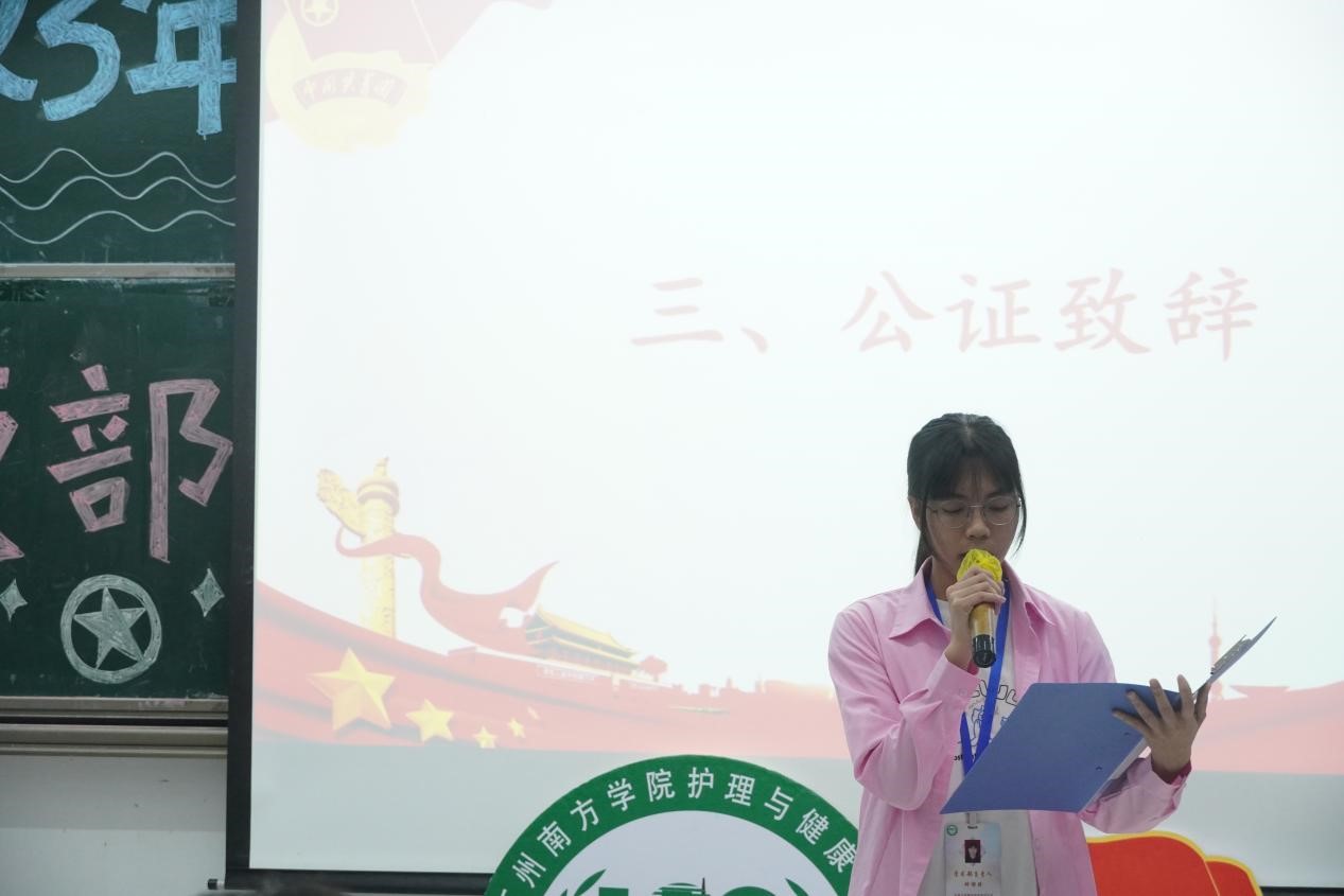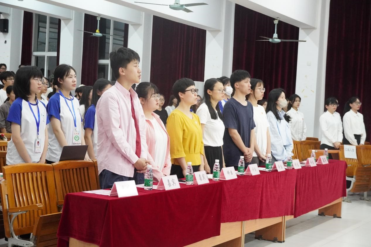 评议大会在激昂的团歌声中拉开帷幕,学术部负责人钟郁婷进行公证致辞。