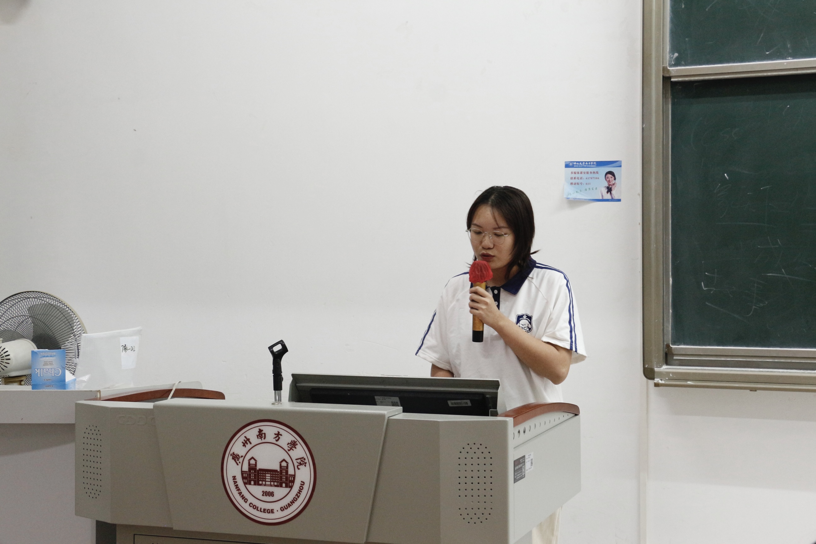 陈乐琪同学首先提出问题——“你为什么加入中国共产主义青年团”,引导同学们进行思考、讨论和分享。她从“共青团的使命及性质”“新时代青年的新使命”“新时代共青团要做到三个必须”展开讲解,并引用习近平总书记勉励青年的话“不忘初心跟党走,是我国广大青年的政治选择,也是我国广大青年的人生航向”,号召入团积极分子坚定马克思主义信仰,确立正确的人生航向。