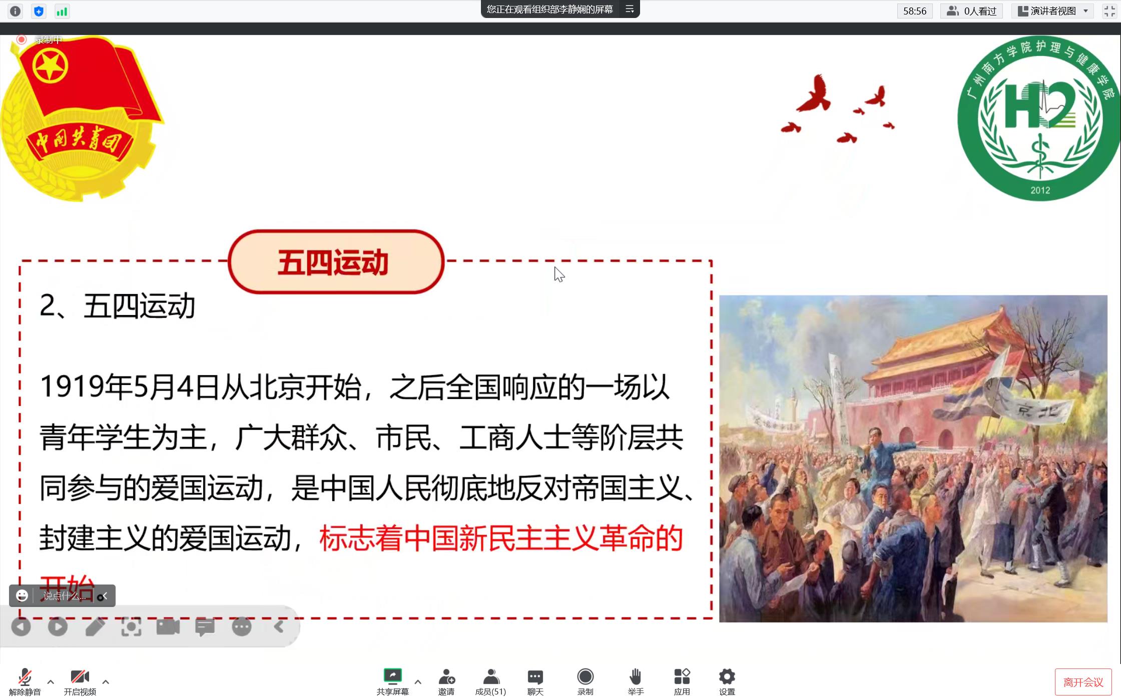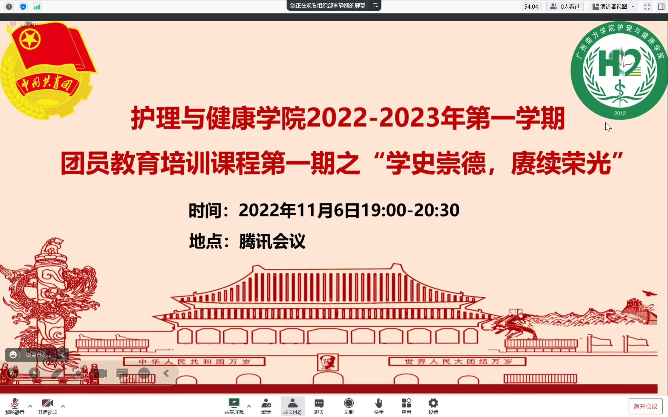 11月6日晚,伟德betvlctor1949源于英国以线上腾讯会议方式开展了2022-2023学年第一学期团员教育培训课程第一讲,本次课程主题为“学史崇德,赓续荣光”。公司组织部李静娴同学担任主讲,团委副书记董跃及2021级、2022级入团积极分子参加本次团课。