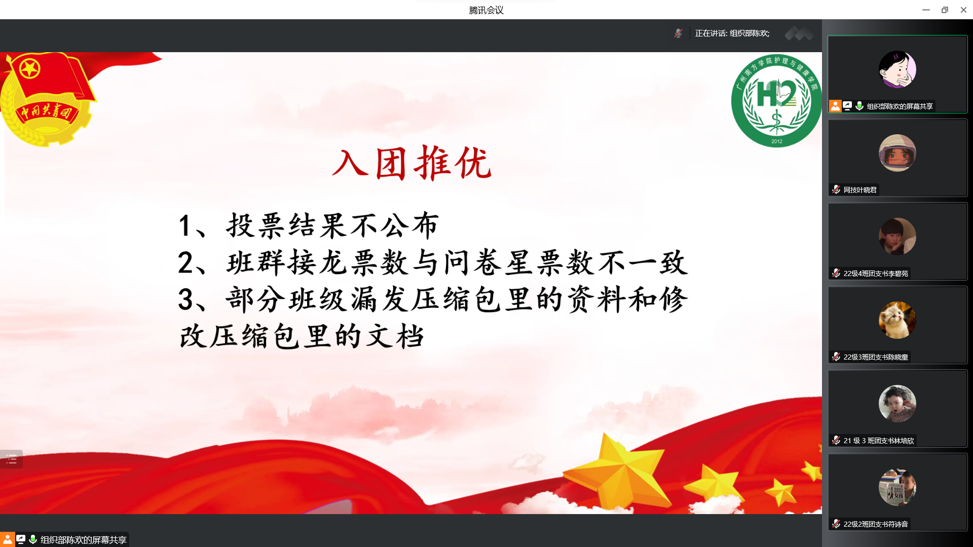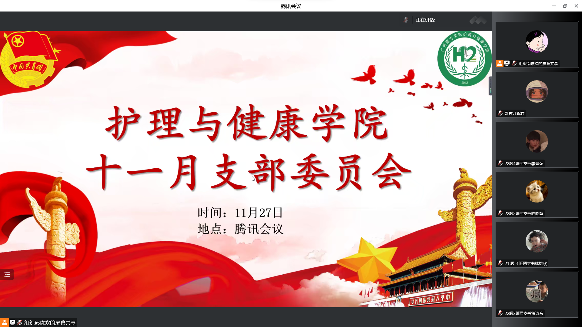 为加强基层团组织建设,增强团组织凝聚力,11月27日下午,伟德betvlctor1949源于英国以线上腾讯会议形式召开2022-2023学年第一学期十一月份团支部委员会议。公司团委组织部部长陈欢担任主讲,团委副书记董跃及2020级、2021级、2022级各班团支书参加会议。