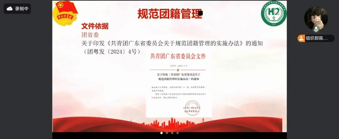 陈泳诗同学依据团省委关于印发《共青团广东省委员会关于规范团籍管理的实施办法》的通知,详细说明了团籍的规范管理的要点,强调团员年度团籍注册应当结合团员教育评议工作进行。
