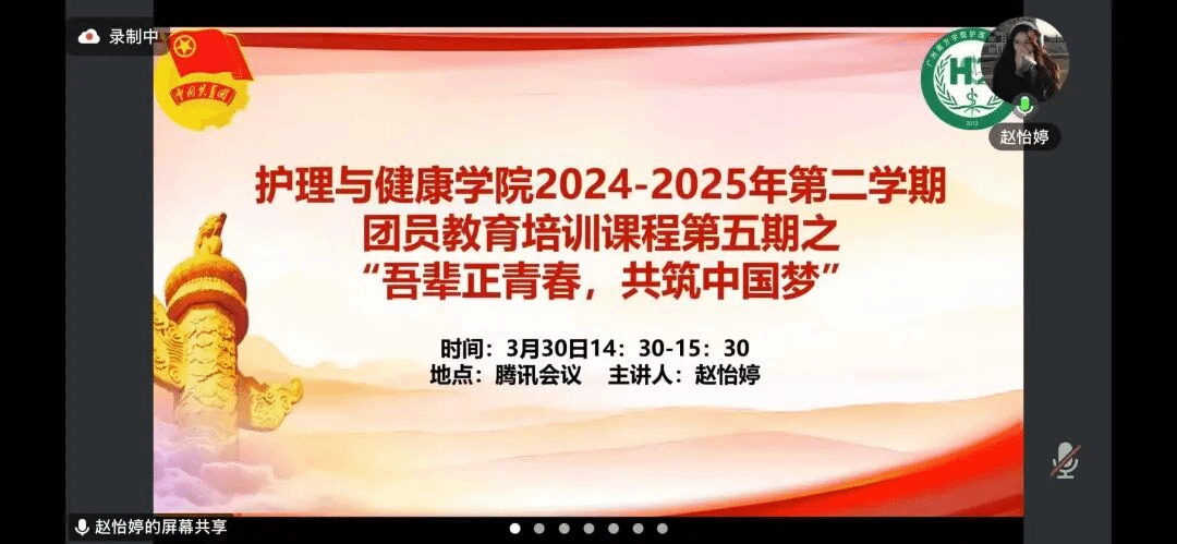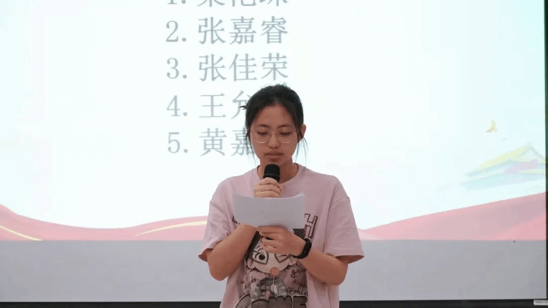 赵怡婷同学带领入团积极分子们深入理解中国梦的内涵,阐释了国家富强,民族振兴,人民幸福是中国梦的核心要义,让同学们深刻认识到了中国梦不仅是民族的梦,也是每个中国人的梦。她还举例从新民主主义时期到新时代时期青年榜样,激励同学们要抓住机遇迎接挑战,将个人梦想融入中国梦中,勇于在时代浪潮中承担责任,积极参与社会实践,提升自身综合素养,为实现中国梦打下坚实的基础。