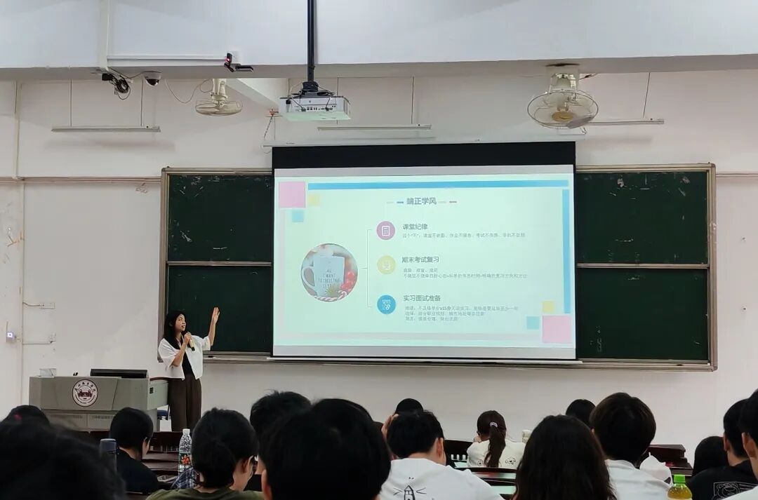 2025年5月23日,2023级辅导员陈乐瑶老师在10教106开展“精耕学业沃土,夯筑成长基石”主题年级大会,围绕课堂纪律规范、学术能力提升和备考复习规划,旨在为同学们的学业发展和综合素质提升指明方向、提供助力。