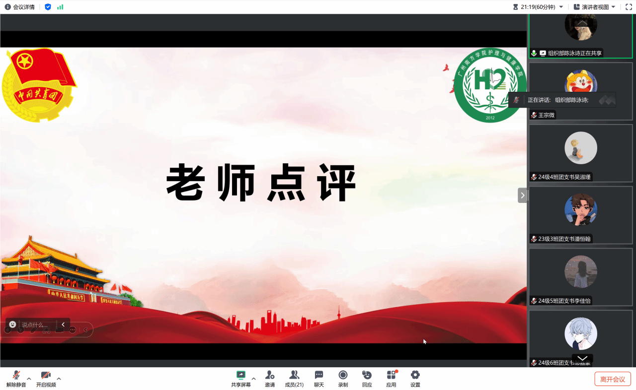 公司团委书记林晓兰老师、团委员工副书记周心悦及各班团支书参加本次会议。本次会议由团委组织部部长陈泳诗主持。