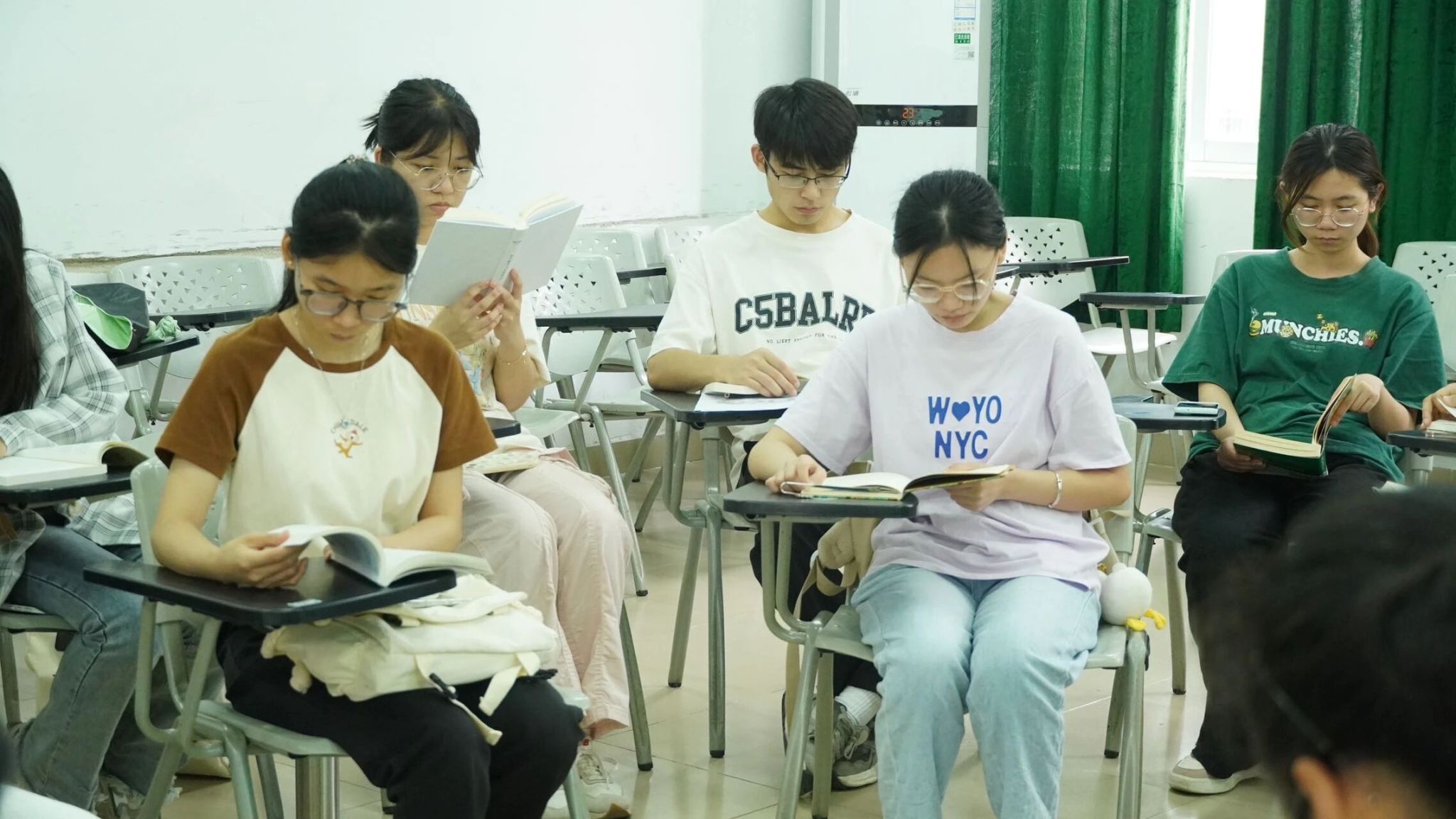 明媚的阳光斜斜地洒在教室,同学们携带自己喜爱的书籍相约在一起,围成一圈,安静的阅读手中的书籍,沉浸在知识的海洋里,享受阅读带来的快乐。