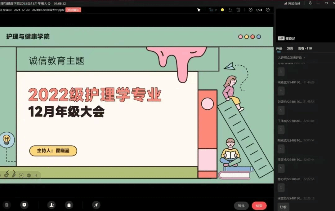大会中,宋唐老师还提及“防诈反骗”“成长学分”“假期安全”等话题,嘱咐各位同学静心备考,假期游玩中注意人身安全,并预祝每一位同学“期末顺利,过个好年!”。